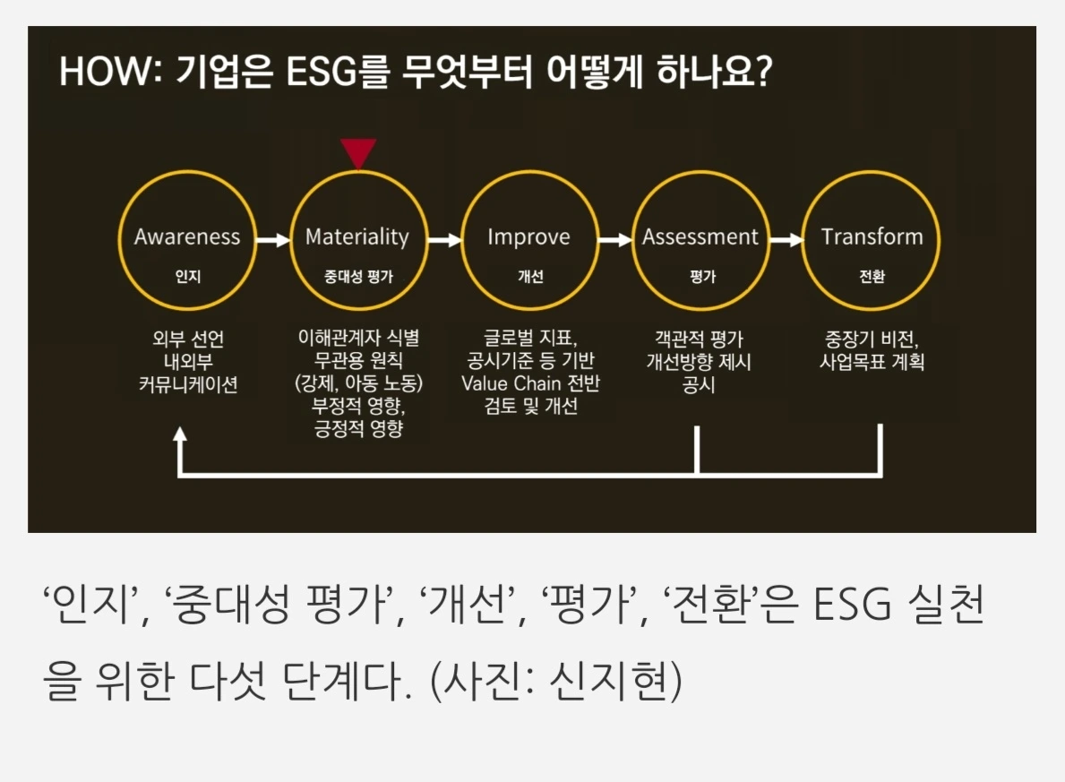 ESG 5단계… 인지·중대성 평가·개선·평가·전환