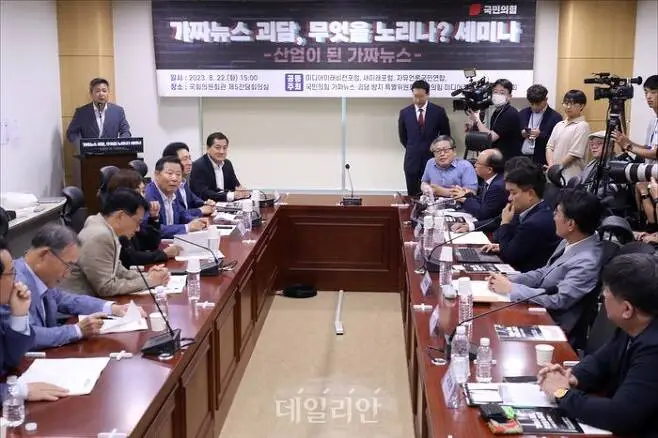 국민의힘은 일본 후쿠시마 원전 오염수 방류를 앞둔 22일 '가짜뉴스 괴담' 세미나를 개최했다. 야당이 오염수 방류 규탄에 돌입한 가운데 "가짜뉴스 카르텔"을 주장하며 맞대응하는 모양새다.