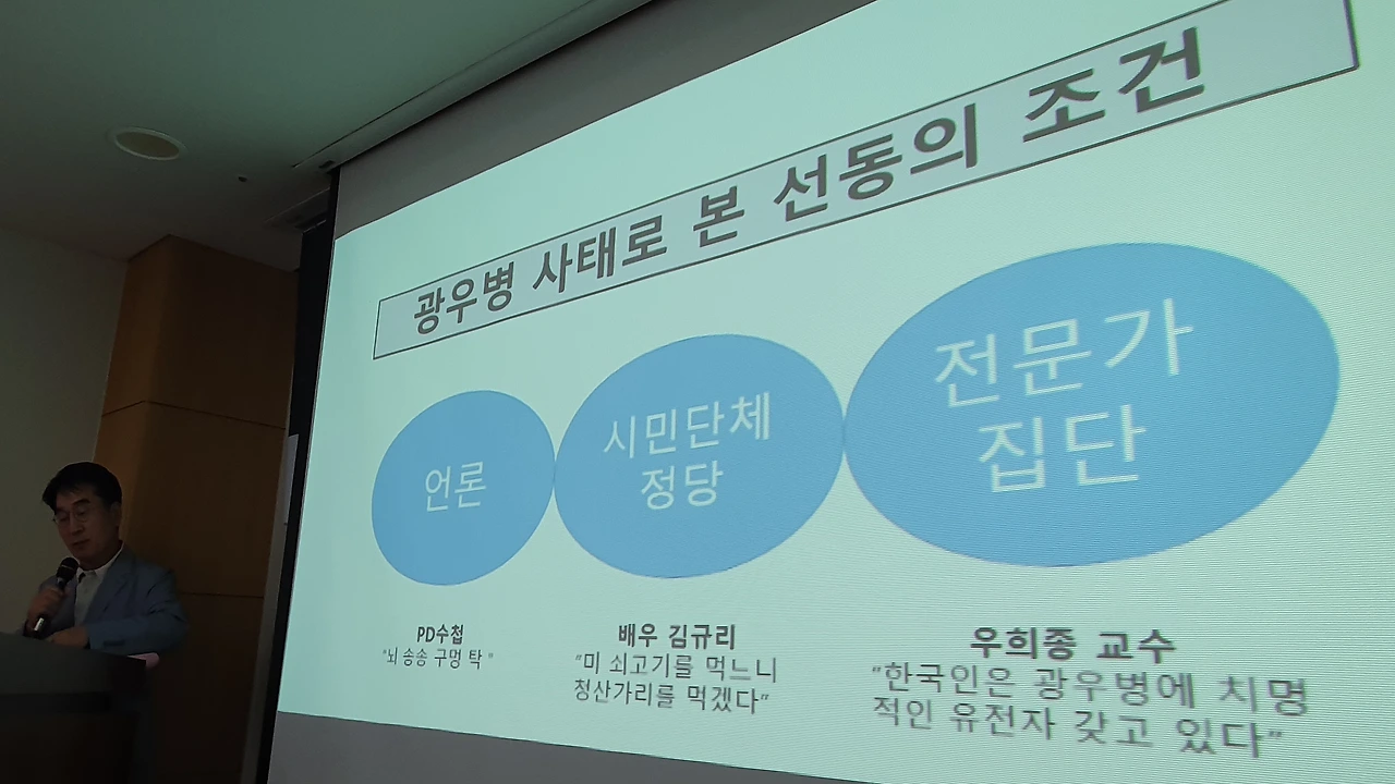 김 위원장은 "괴담 장사꾼에는 노영방송을 비롯한 기존 언론도 포함돼 공포심을 조장해 이익 추구를 극대화 할 것"이라며 "가짜뉴스를 생산하고 괴담을 퍼뜨리는 게 이제 하나의 거대한 산업이 됐다"고 비난했다.