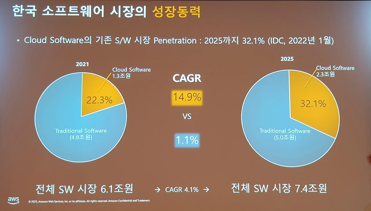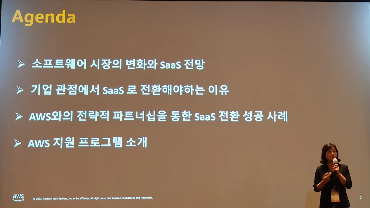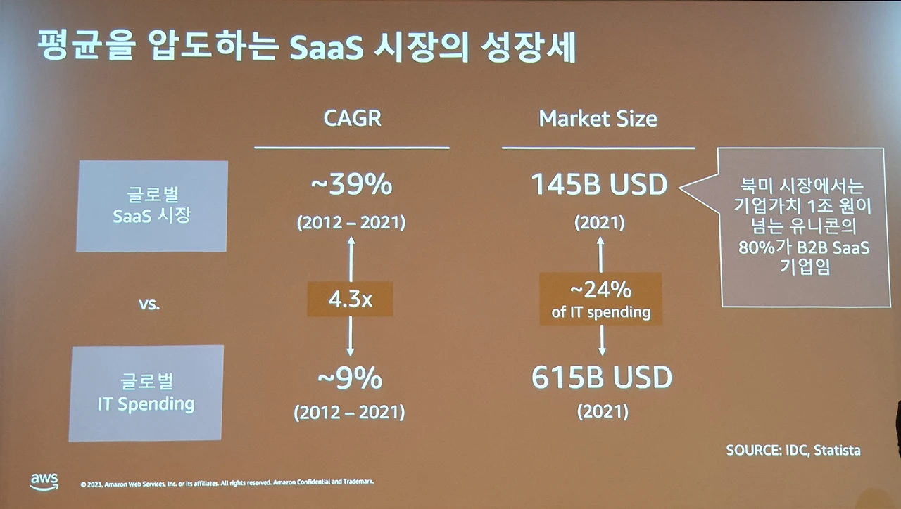 "한국 정부의 2026년 SaaS 기업 1만개 육성 목표, 적극 지원할 것" 송주현 AWS 총괄, 14일 KCSF2023서 'AWS 기반 SaaS 성공 사례 '발표