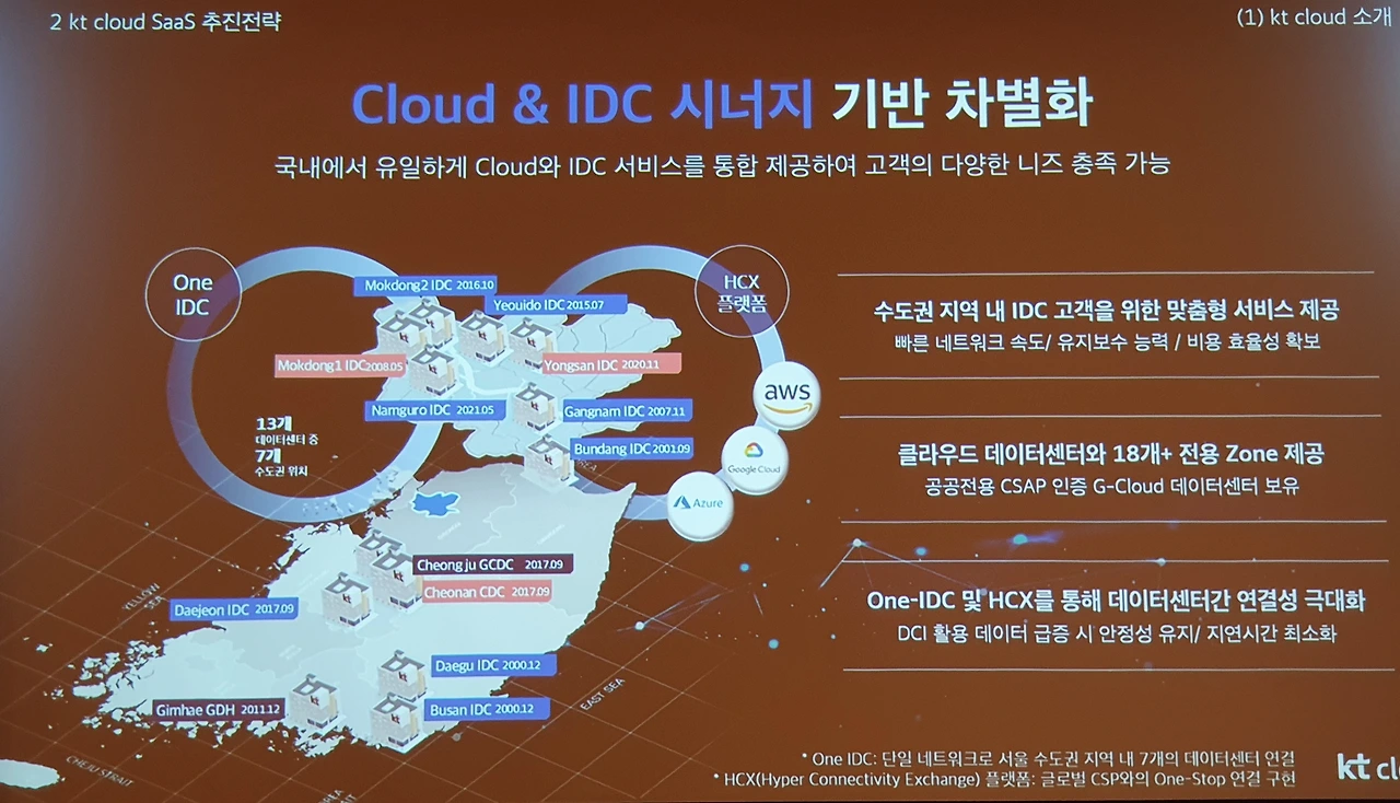 이날 정진호 그룹장이 언급한 클라우드 플렉스미디어는 클라우드에서 비디오 콘텐츠를 관리하고 운영하는 미디어 플랫폼(OVP)을 통해 컨텐츠 업로드, 메타정보 관리, 운영 자동화, 방송서비스 연결 등이 가능한 솔루션이다. 클라우드플렉스 딜리버리는 다양한 CDN(분산된 서버를 연결하는 네트워크)을 하나의 서비스로 제공하는 멀티-CDN이다.