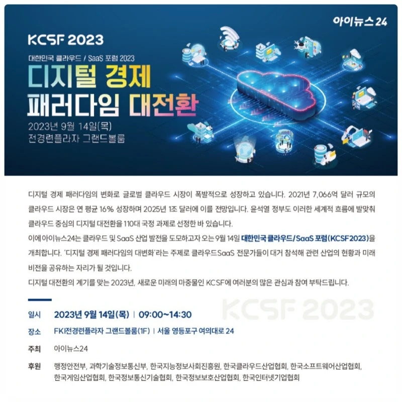 정 그룹장은 이날 아이뉴스24가 주최한 '대한민국 클라우드·SaaS 포럼 2023(KCSF2023)'에 참석해 "개별적으로 서버를 구성하고 보안 프로그램을 설치하는 방식에서 이제는 클라우드 내 모든 서비스를 제공받기를 원하는 기업이 늘어나고 있다"며 이같이 말했다.