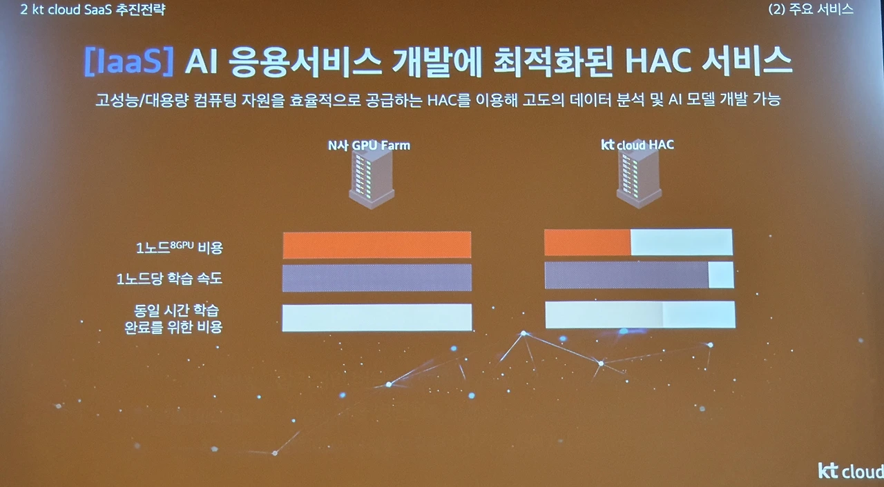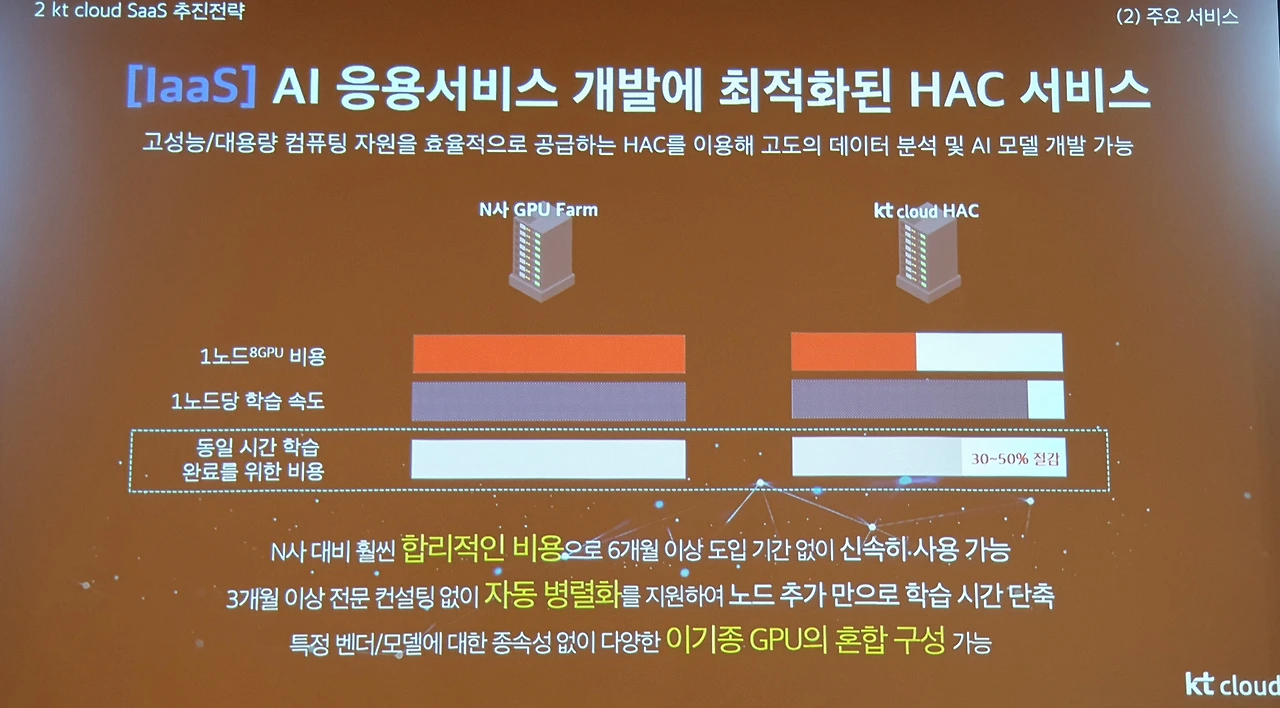 김 대표는 이 자리에서 오픈 AI의 챗GPT 등장 이후 클라우드의 중요성에 대해서도 언급했다. 그는 "GPT 탄생이 가능했던 부분은 대규모의 클라우드 인프라가 있었기 때문"이라며 "오픈 AI의 초거대 언어 모델을 학습화 하기 위해선 A100 서버가 약 3600대, GPU 수로는 2만8000개가 필요하다. 비용으로 보면, 한번 학습화 하는 데 약 500억원 정도의 비용이 발생한다"고 말했다.
