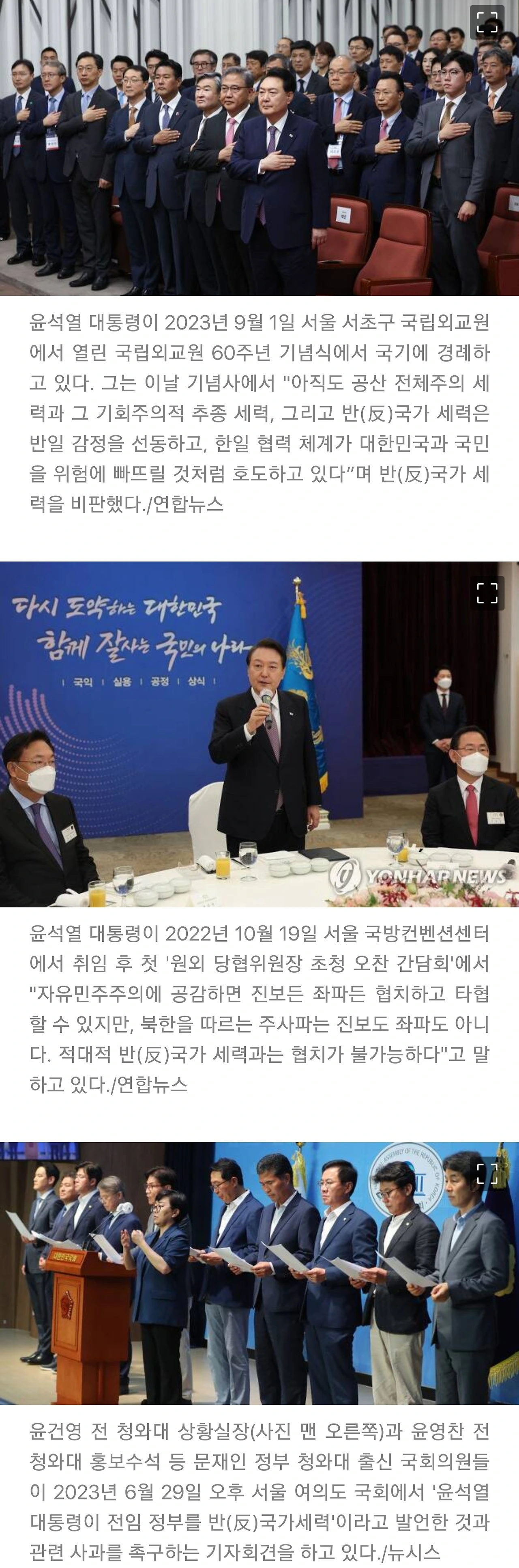 “지금 우리 시대에선 우파(右派) 노릇을 하는 게 솔직히 갑갑할 수 있다. 그런 점에서윤석열 대통령이 북한의 주체사상을 믿는 좌파들을 반(反)국가 세력, 전체주의자라며 이념 전쟁을 벌이고, 자유민주주의 성향을 분명히 하는 것은 위로(慰勞)가 되고 용기있는 행동이다. 이를 위해 무엇보다 자유우파 세력이 작은 의견 차이와 갈등은 접고 큰 차원에서 마음을 모아 대동단결해야 한다.”