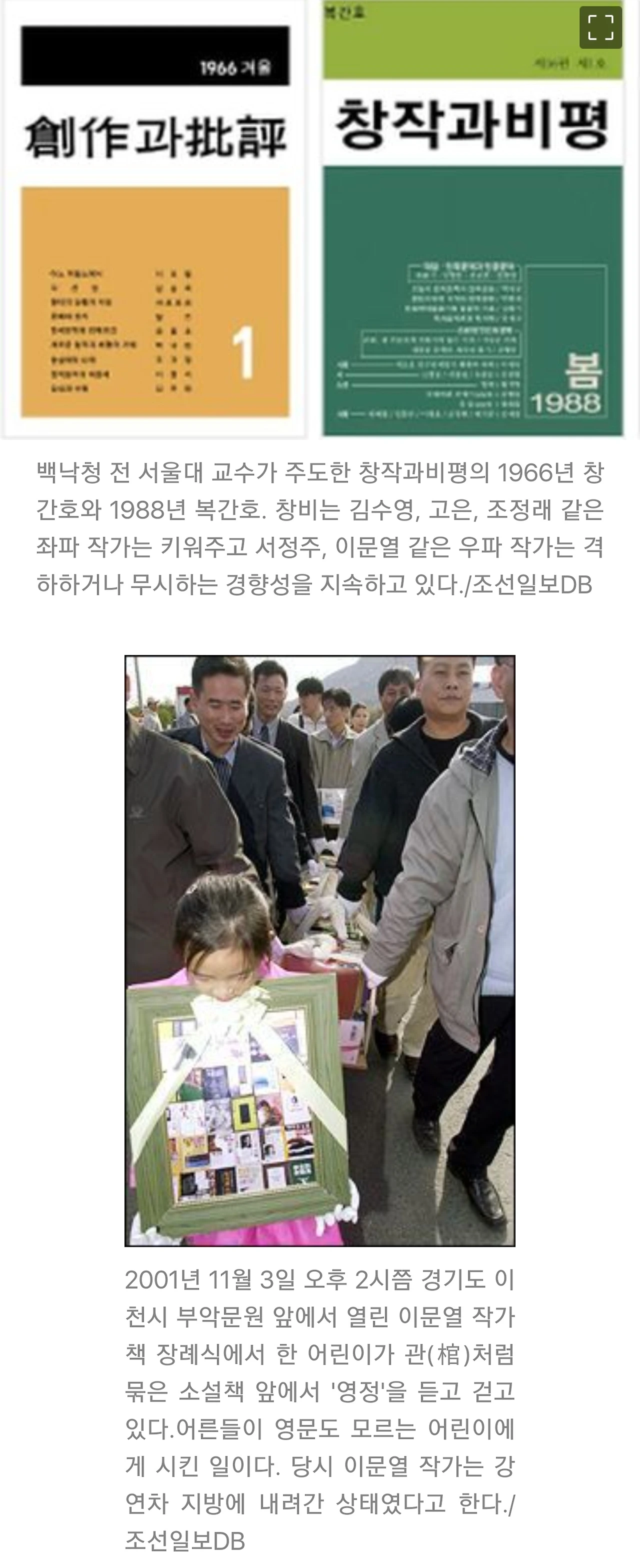 “부정할 수 없는 현실이다. 내가 많은 작품을 내고 활동했지만, 좌파 진영 문예지인 ‘창작과비평’과는 무관하게 보냈다. 내 작품이 32개국에 25개 언어로 번역돼 팔리고 있지만, 그들이 수십 년동안 나를 거론조차 않고 있어서다.”