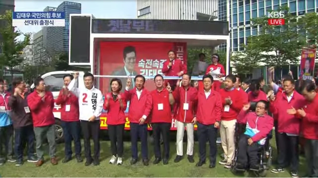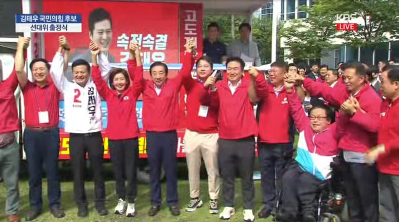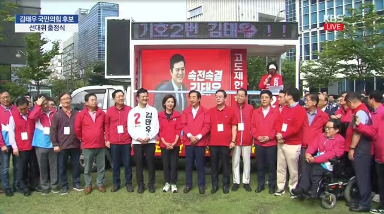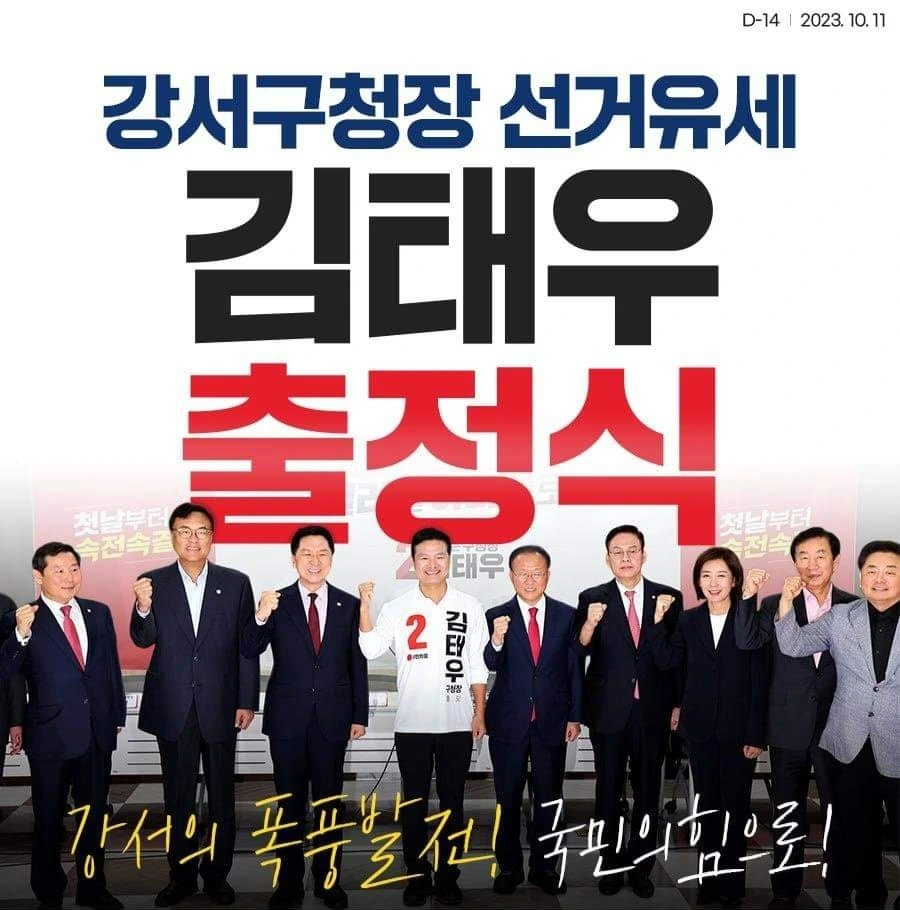 국민의힘 김기현 대표는 공식 선거운동 첫날인 오늘 오전 서울 강서구 발산역 앞 광장에서 열린 김태우 후보 출정식에 참석해 지지를 호소했습니다.