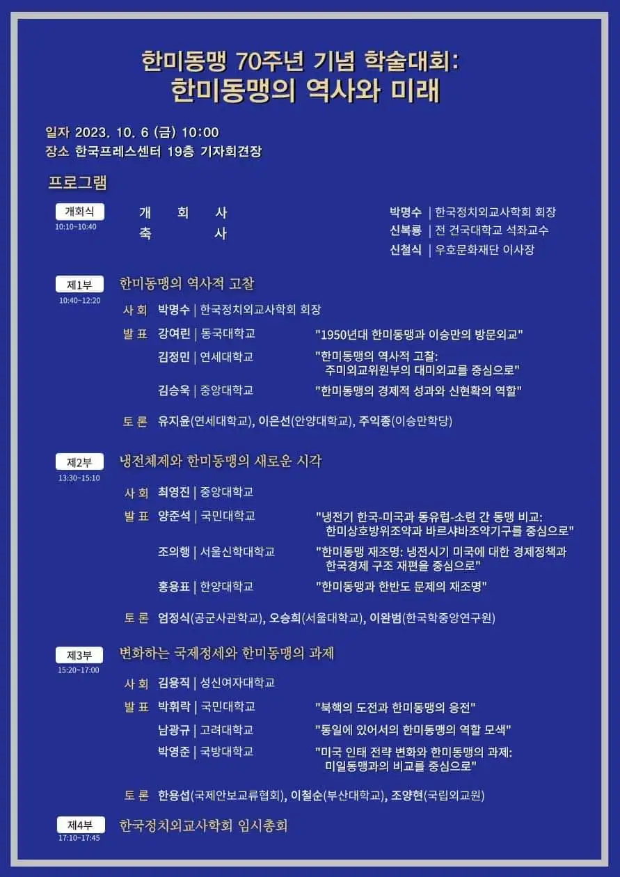한미동맹 70주년 기념학술대회 : 한미동맹의 역사와 미래