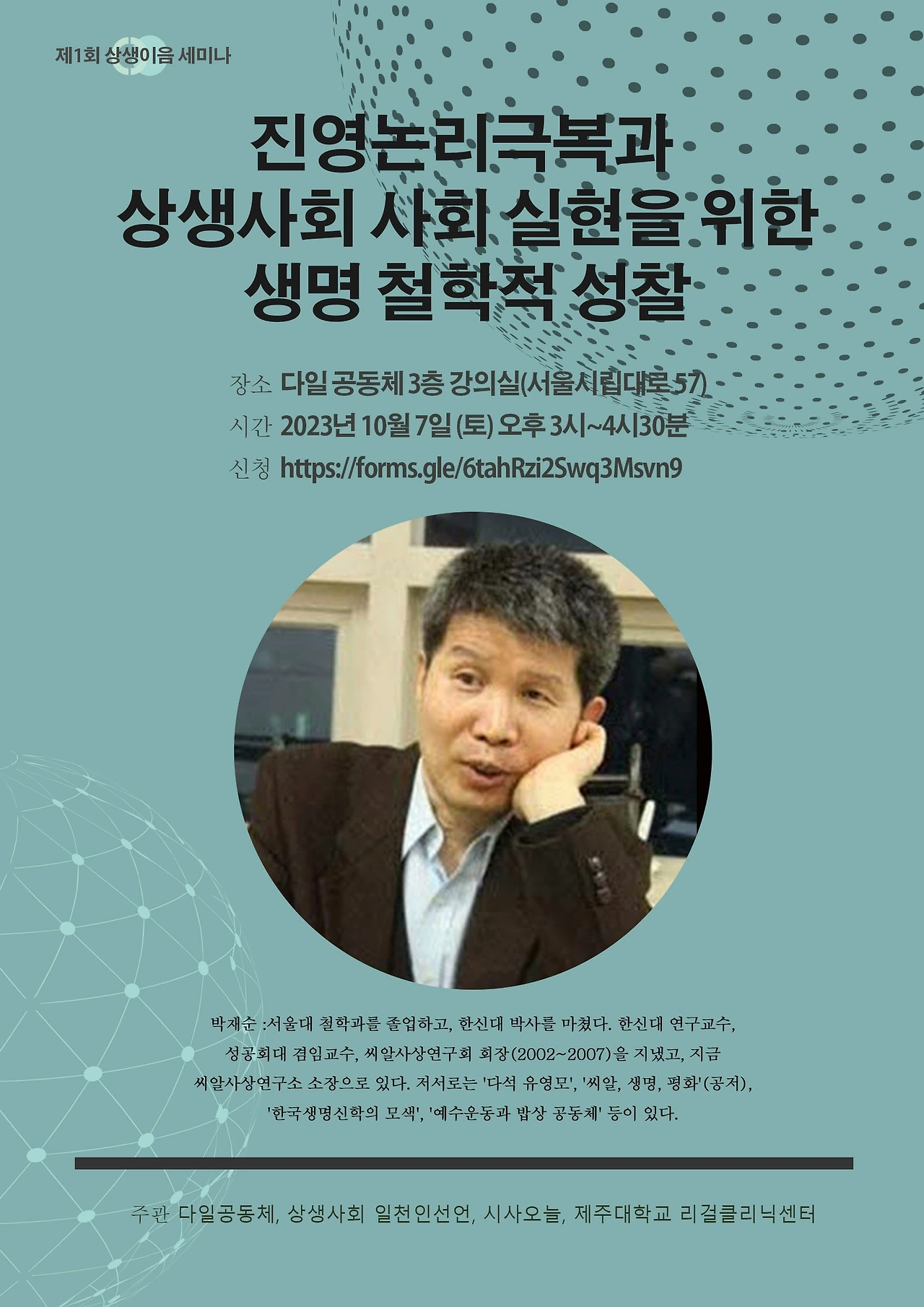 - 박재순 소장님은 1980년대 내가 함석헌 선생의 씨알사상에 심취할 때 인연을 맺었고, 그 이후 박재순 소장께서 휠체어를 타게 되시면서 '장애인신학'으로 또 인연을 맺게 되었다. 그리고 그것은 결국 내 박사학위 논문의 주제가 되었고 내 생애의 과제도 되었다. 오늘 강연에서 박재순 소장님은 역시 함석헌 선생의 씨알사상에 대해 당연히 논했는데, 이색진 것은 도산 안창호 선생의 영성에 대한 내용이었다. 사실 그동안 내가 사상이나 영성 차원에서 안창호 선생에 대해 접근한 적은 없었던 까닭이다. 앞으로 도산 안창호 선생에 대해 깊이 들어가야할 것 같다고 느끼게 된 것, 도산 안창호 선생에 대한 재발견이 오늘 모임의 뜻밖의 수확이다.