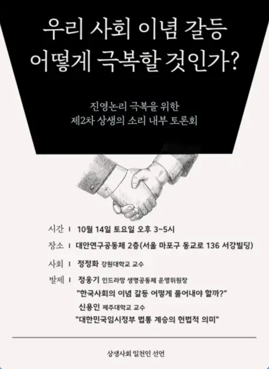 우리 사회 이념갈등 어떻게 극복할 것인가? 주최 : 상생사회 일천인선언