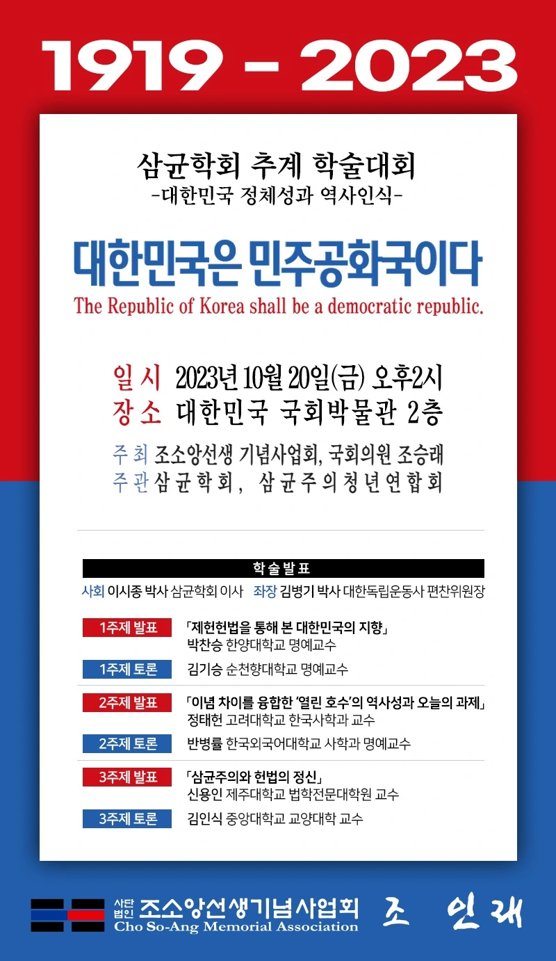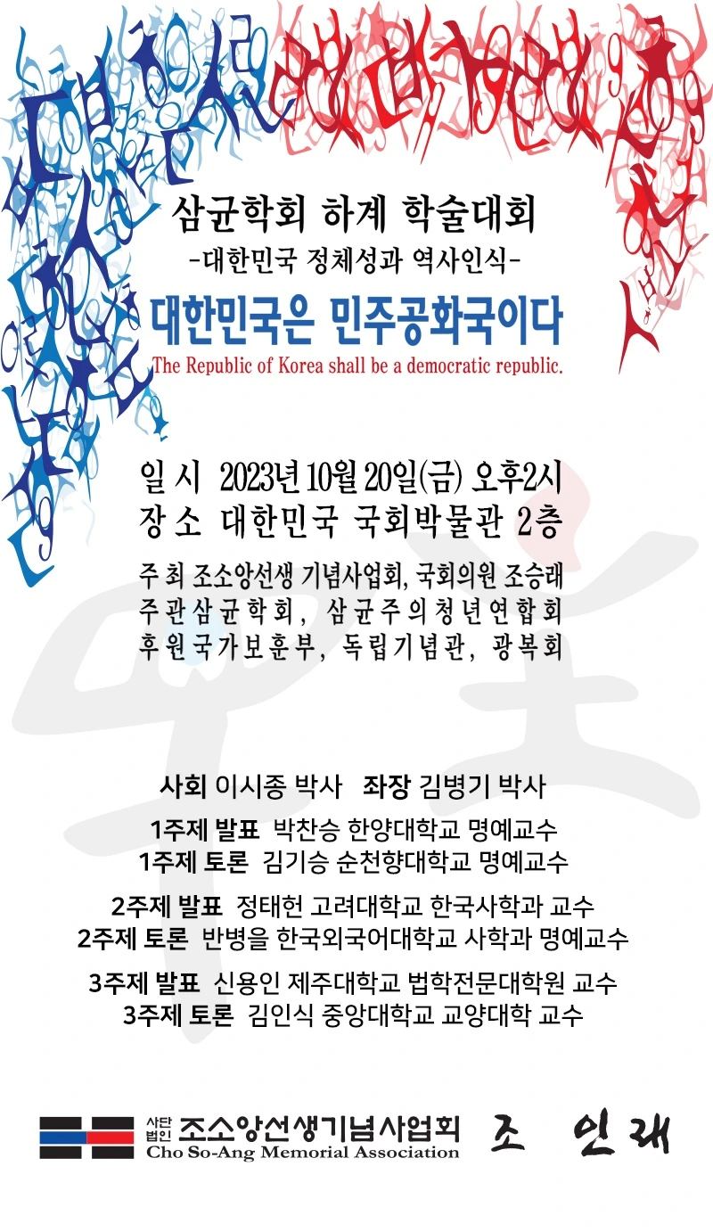 삼균학회 추계 학술대회 : 대한민국 정체성과 역사인식