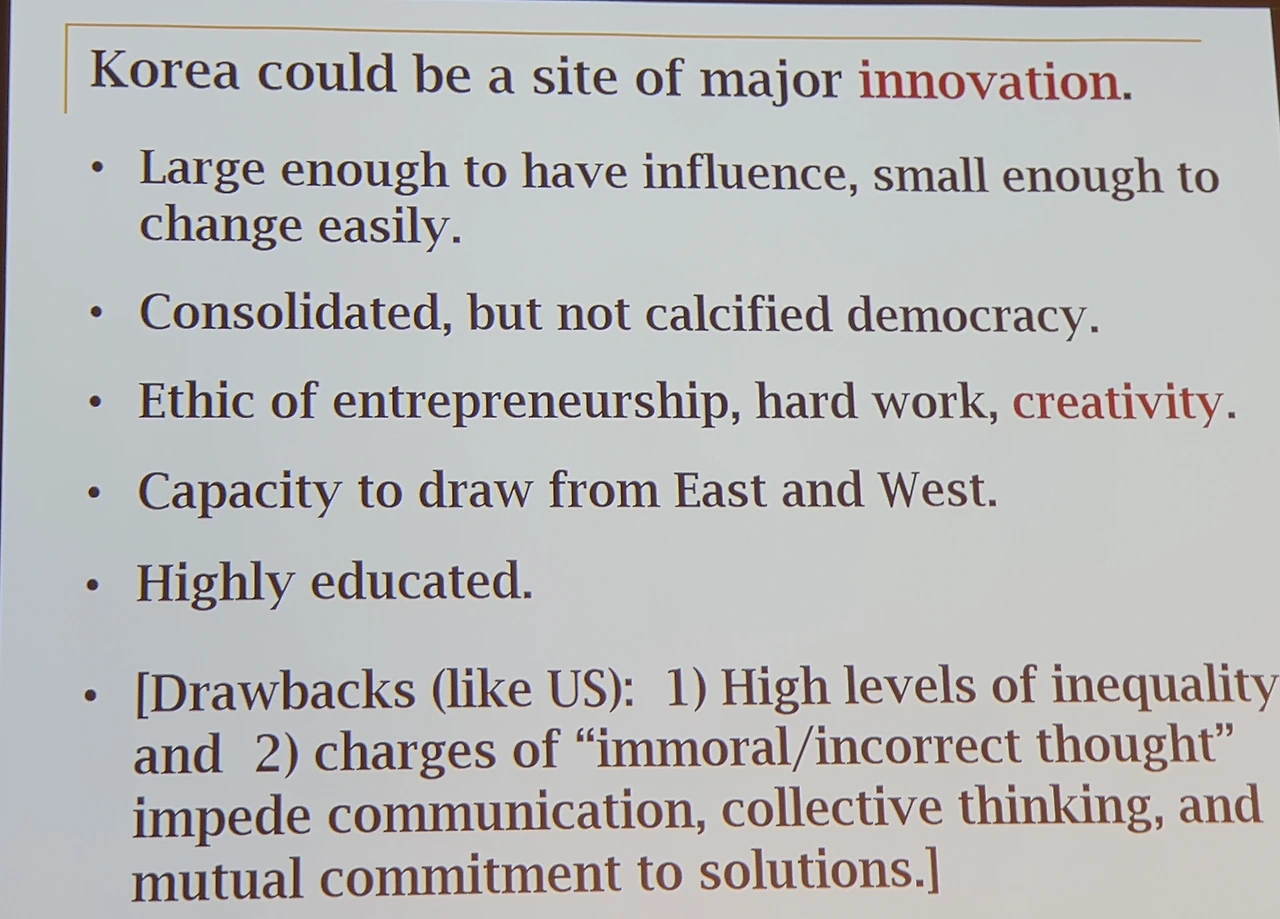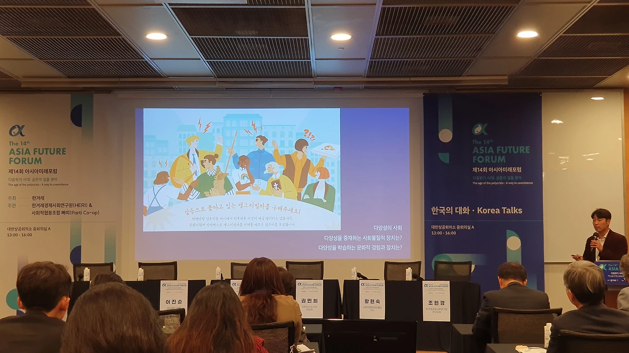 - 올해도 초대 받아 참석했는데, 그 주제가 '공존'이었다. 심지어 '분과세션 2'의 주제는 아예 '한국의 대화(Korea Talks)'. 진보진영이 선거에 패해 권력을 잃고나서야 비로소 보수진영과의 진영간 대화와 공존을 바라고 필요성을 느끼는 것은 비록 늦은 깨달음이지만 의미있는 움직임으로 받아들이고 싶다. 사실 이런 적대적 진영 사이의 벽을 뛰어넘고자 하는 움직임이 대한민국만이 아니라 유럽과 미국에서도 전세계적 운동(The World Talks) 벌어지고 있다는 사실을 오늘 처음 알게 되어 무척 반가웠다. 그만큼 이 지구촌이 갈갈이 찢겨져 아파하고 있다는 의미이리라.