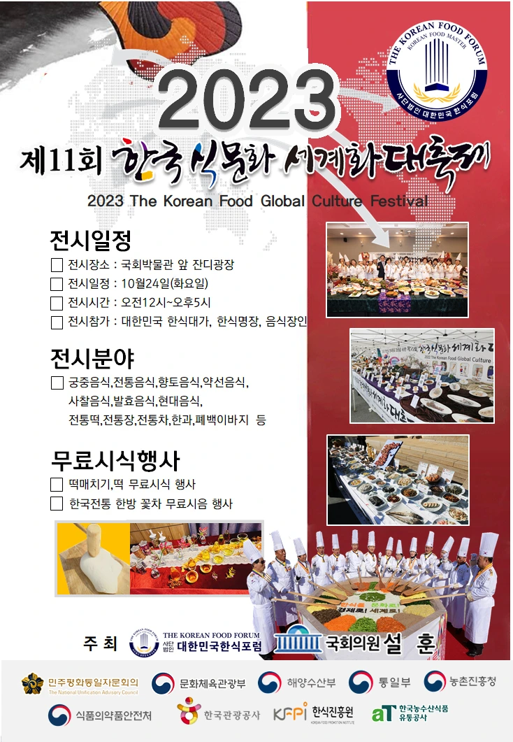 전시분야 : 궁중음식, 전통음식, 향토음식, 약선음식, 사찰음식, 발효음식, 현대음식, 전통떡, 전통장, 전통한과, 전통차
