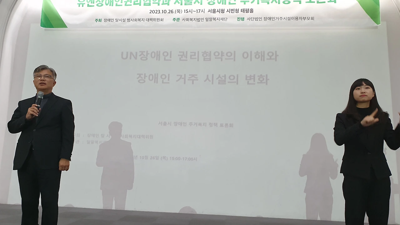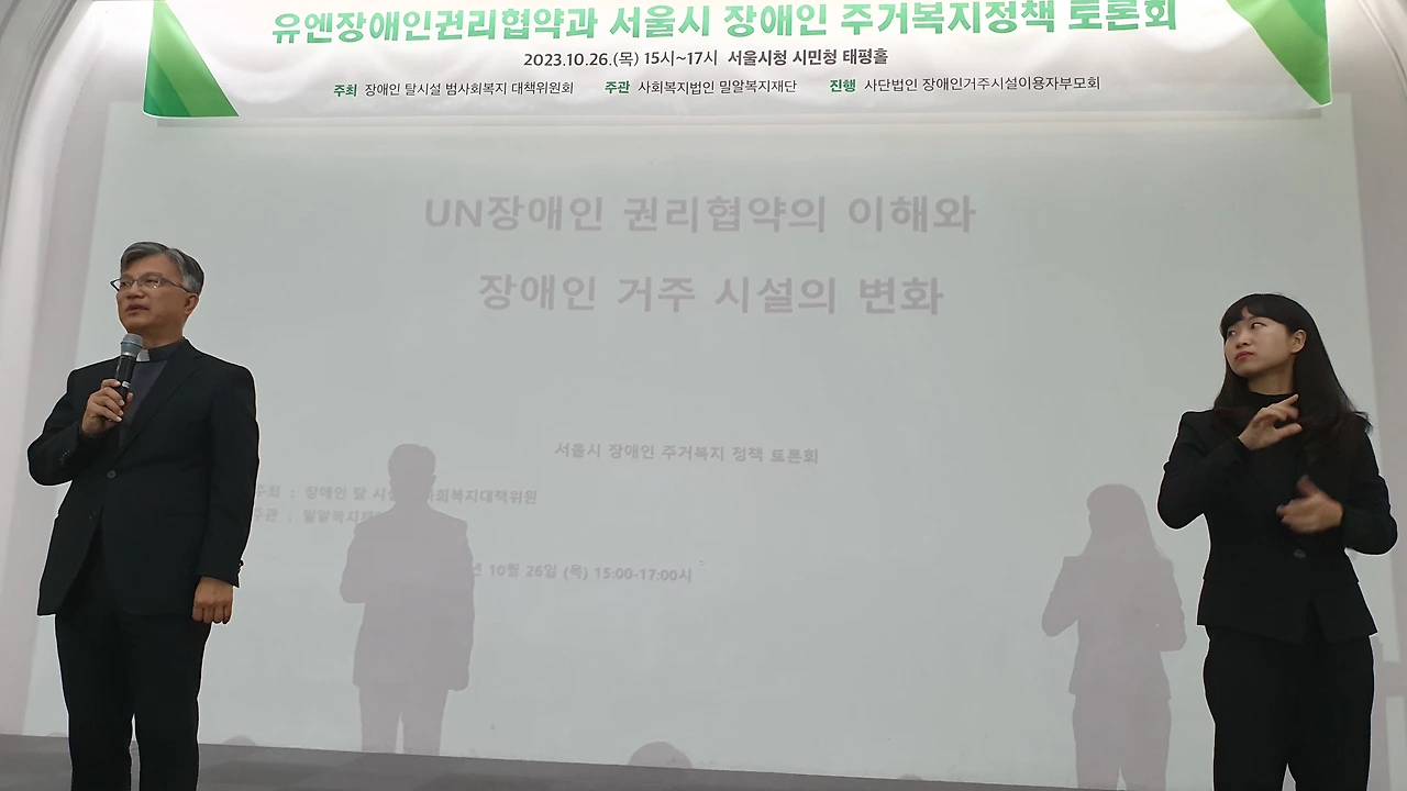 2부 토론회에서는 김상용 국민대학교 행정대학원 사회복지전공 주임교수가 좌장을 맡았다. 첫 번째 발제자로 나선 이기수 신부(한국천주교주교회 사회복지위원회)는 ‘유엔장애인권리협약의 이해와 장애인 거주시설의 변화’를 주제로 발표했다.