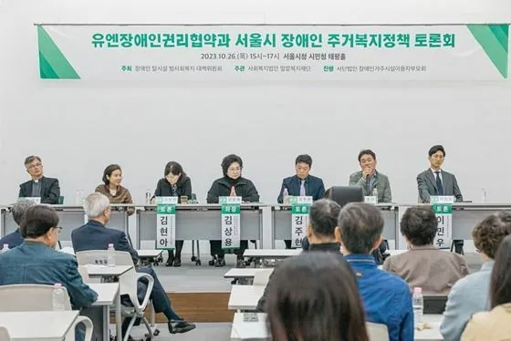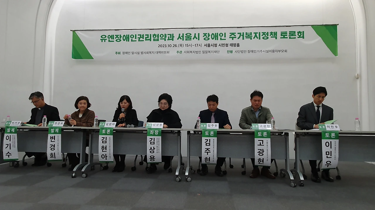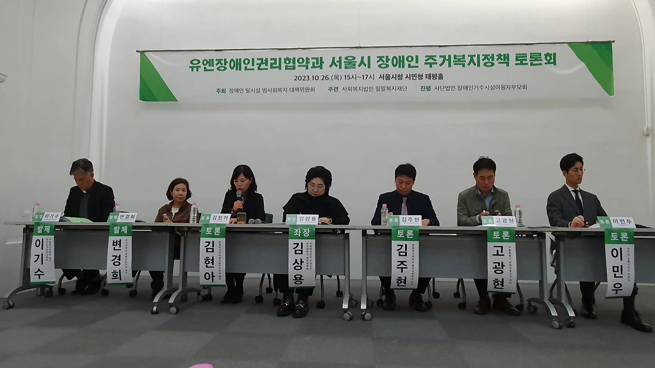 주제발표 이후에는 김현아 장애인거주시설이용자부모회장, 김주현 원광보건대학교 물리치료학과 교수, 고광현 서울시장애인복지과장, 이민우 임무영법률사무소 변호사가 참석해 현 장애인 주거복지 정책의 현실적 문제점을 짚어보고 문제해결을 위한 대안을 논의했다.