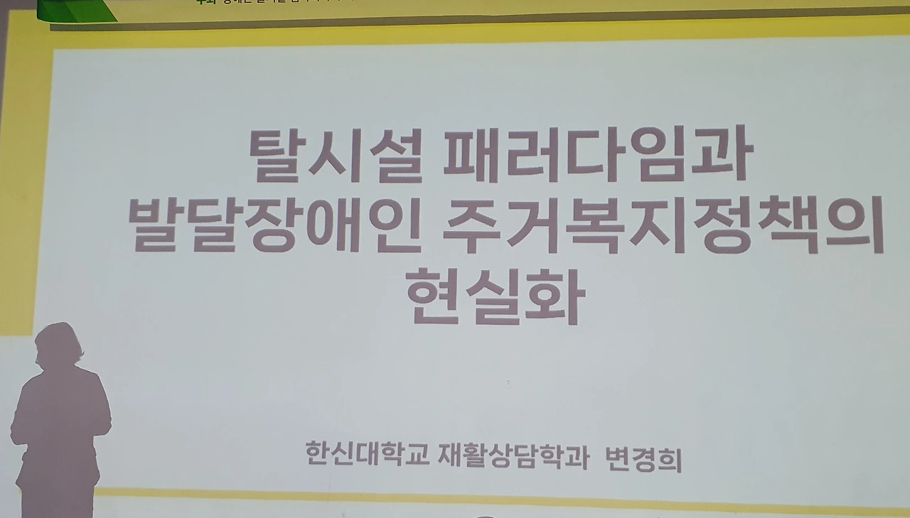 두 번째 발제를 맡은 변경희 한신대학교 재활상담학과 교수는 ‘탈시설 패러다임과 발달장애인 주거복지정책의 현실화’로 주제발표를 펼쳤다.