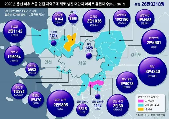 김포시뿐만 아니라 고양, 구리, 광명, 하남, 과천, 성남 등 서울 초인접 지역도 편입을 고려하는 것으로 알려지며 지난 2008년 18대 총선때의 '제2 뉴타운' 전략이라는 말도 나온다.