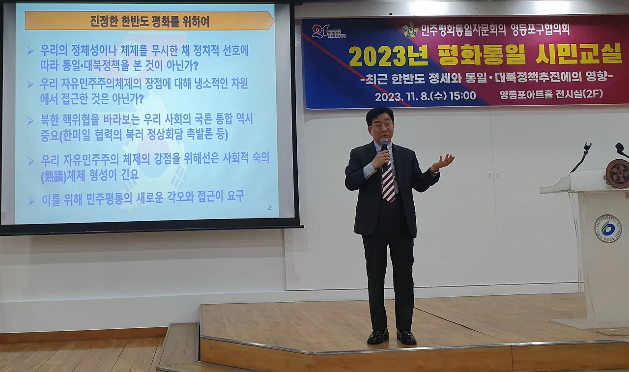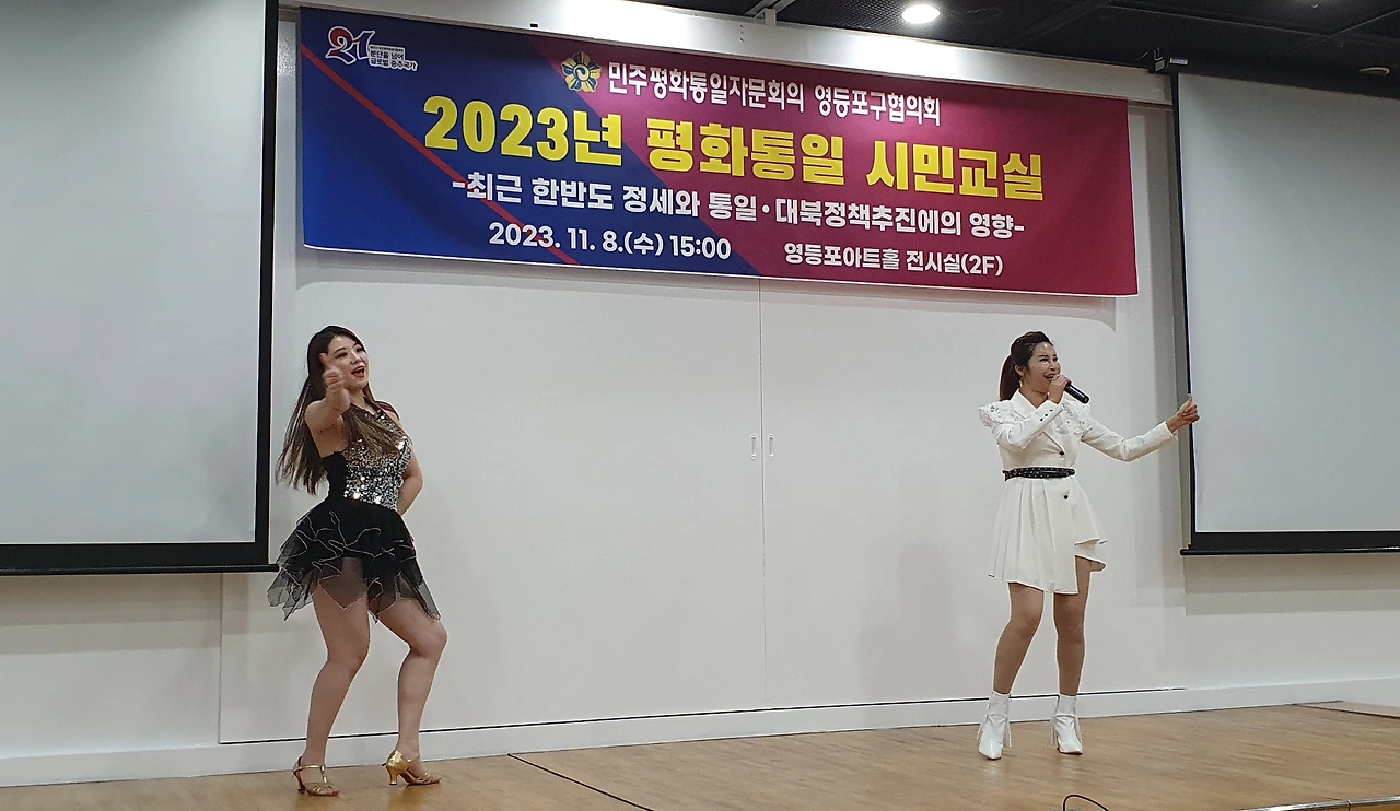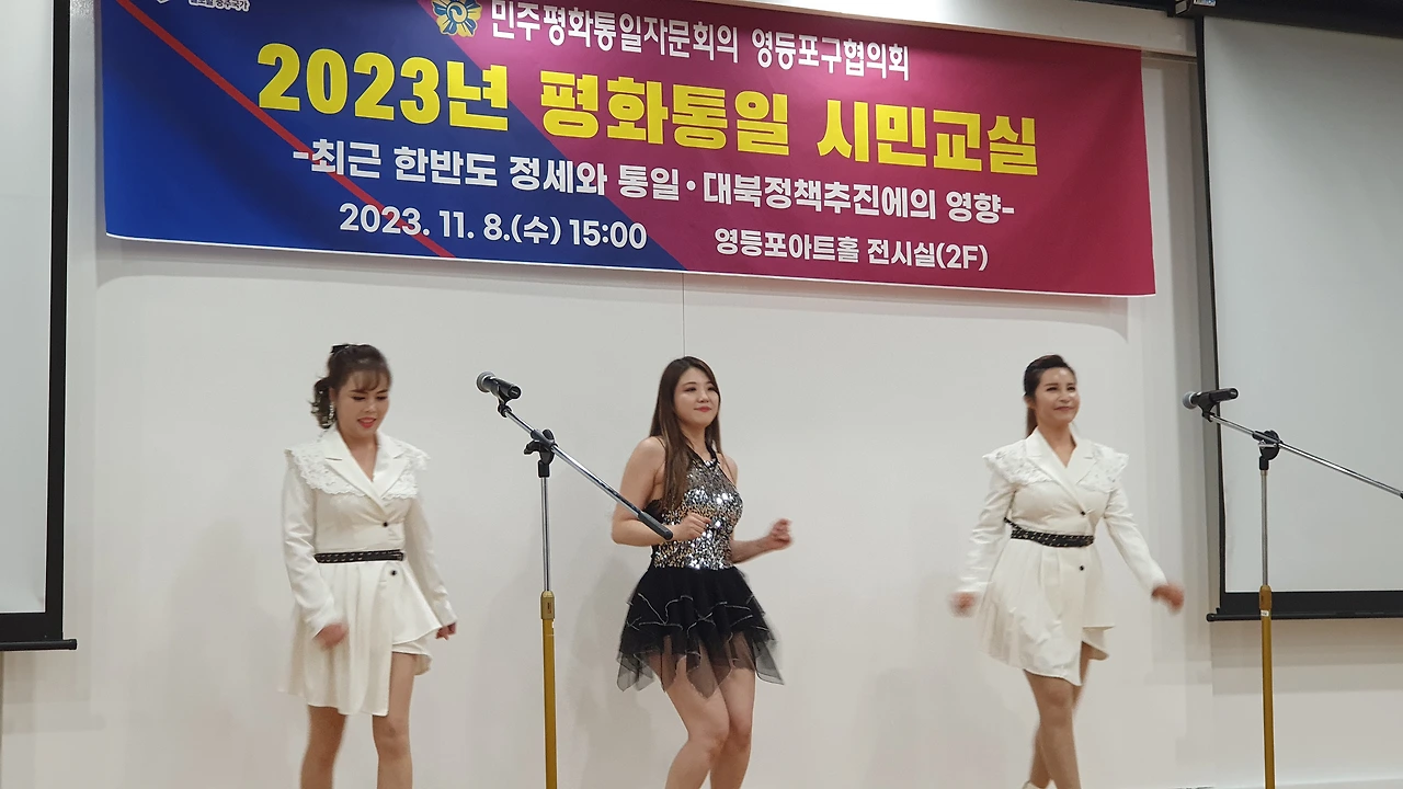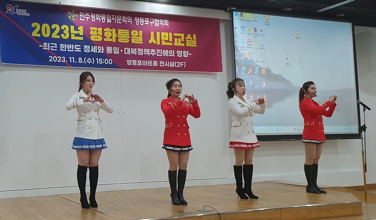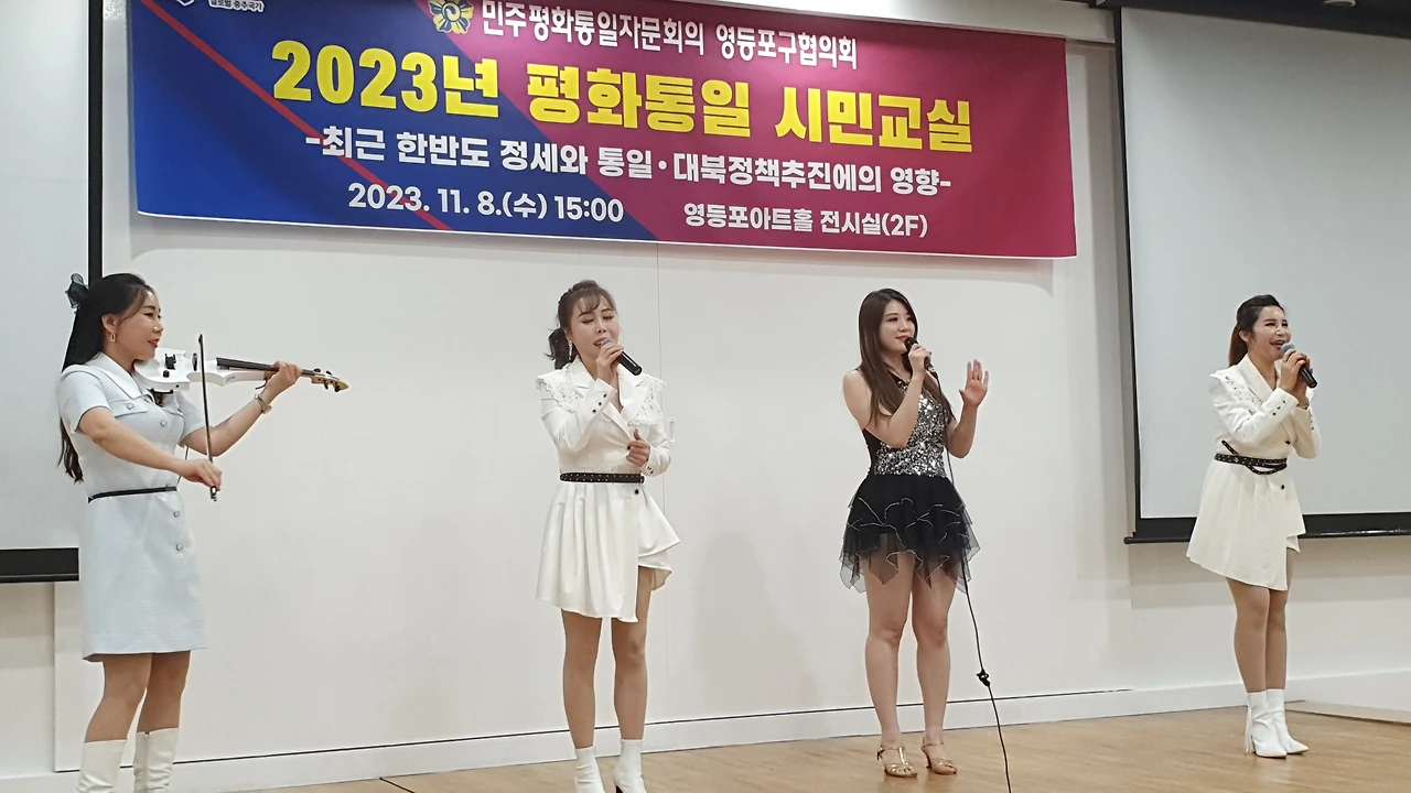 영등포구 평통위원 부회장이자 사회복지위원장으로 활동하게 되면서 민주평화통일자문회의 취지에 맞게 탈북민들의 문제에 관심을 갖고 접근해보고자 한다. 마침 최근 모임에 함께 하고 있는 '통일과나눔'도 그러하고, 박선영 의원의 '물망초' 모임도 그러하다. 그들 북한 이탈주민들이 비록 소수집단이지만, 북한 인민의 김일성 집안으로부터의 해방과 민족의 평화적 통일에 의미있는 역할을 할 것 같은 예감이 드는 까닭이다. 오늘 축하공연하러 온 여성4인조 백호라는 밴드가 탈북민 출신인데, 그들의 공연을 보며 많은 생각에 잠겼었다.