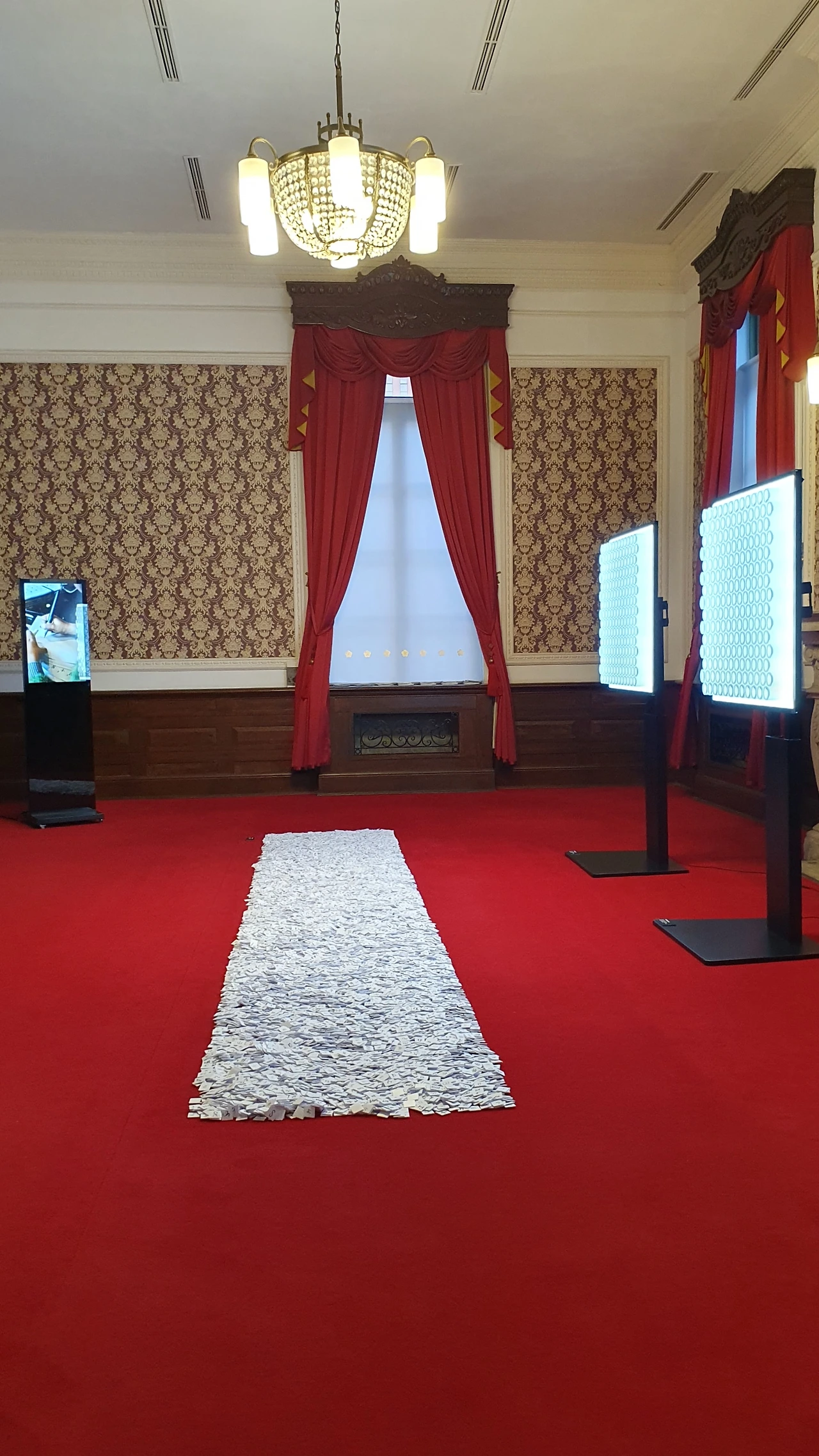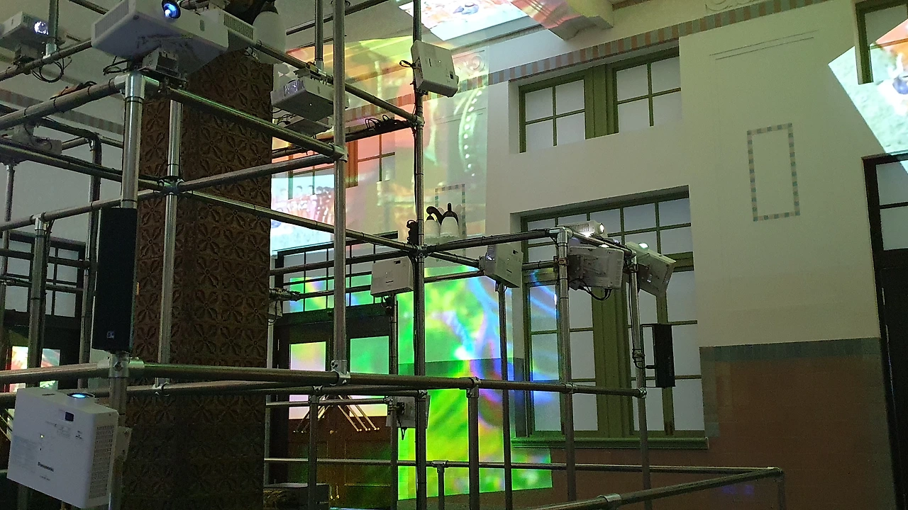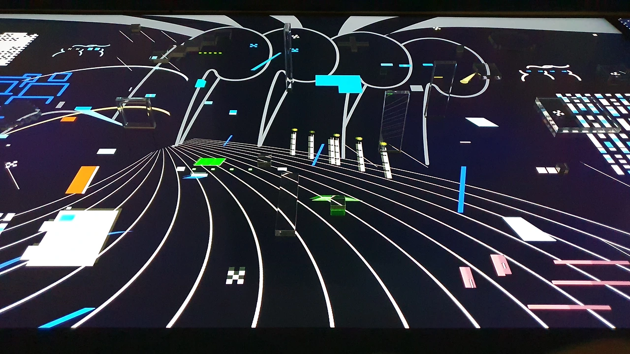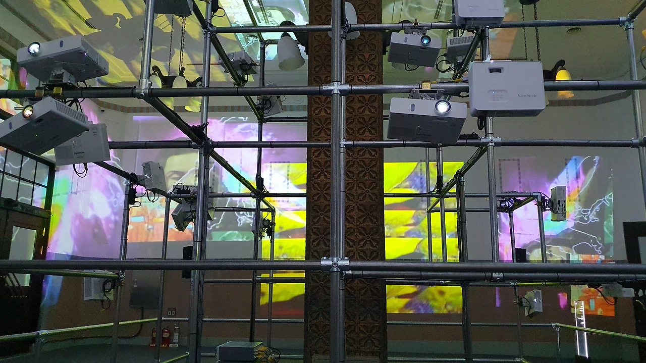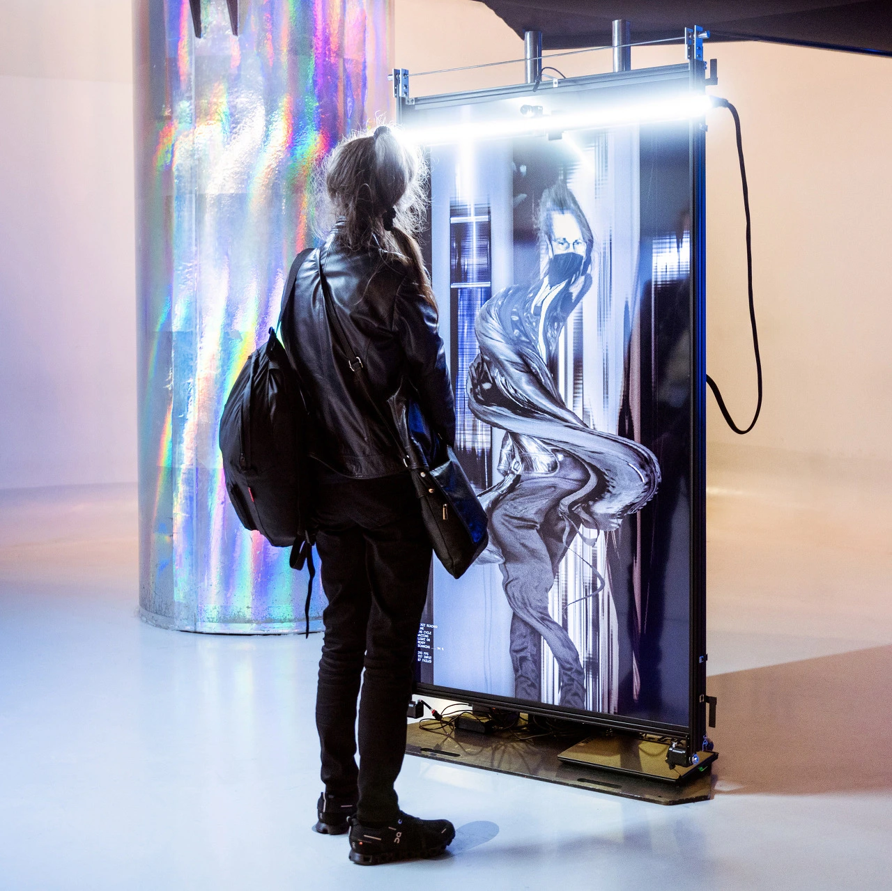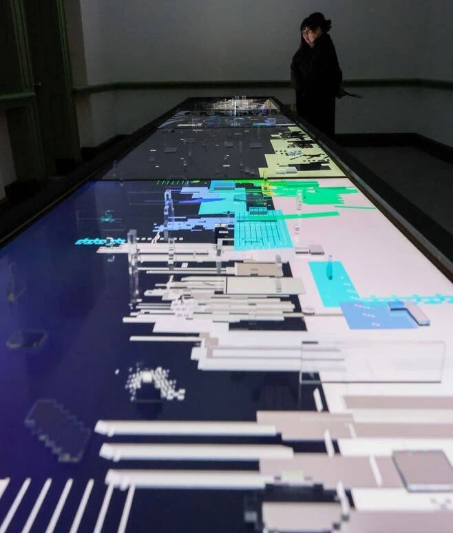 전시는 ‘환승시간’, ‘우리, 여행자들’, ‘내일 도착’ 등 세 가지 섹션으로 구성됐다. 첫 번째 섹션 ‘환승시간’에서는 동시대 융합예술의 역사적 기원과 ‘지금’의 상황이 펼쳐진다. 가상현실(VR)과 인공지능(AI), 미디어아트, 사운드 인스톨레이션 등 관람객은 기술이 가져온 변화의 다양한 모습을 통해 21세기 기술과 예술이 질문하는 융‧복합 시공간으로의 환승을 경험한다.