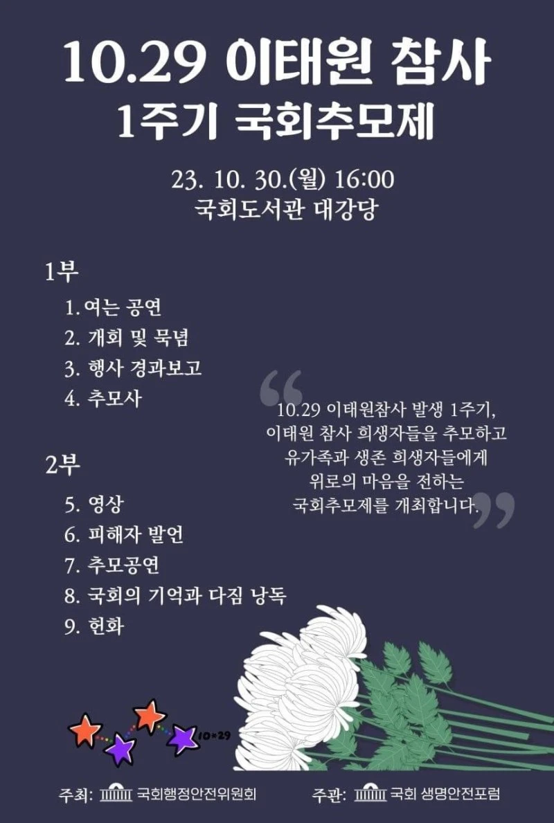 10.29 이태원 참사 1주기 국회 추모제 / 정중규