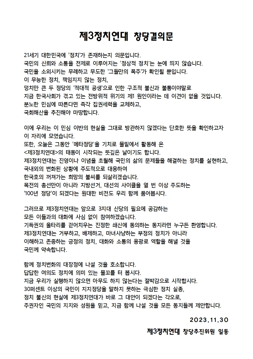 제3정치연대 창당추진위원회 출범식 / 정중규
