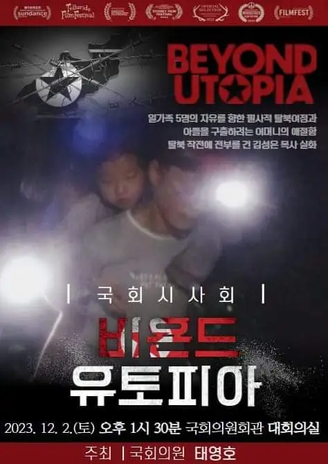 <비욘드 유토피아>는 북한에 남겨 두고 온 젊은 아들을 어떻게든 남한으로 데리고 오려는 어머니, 목숨을 걸고 국경을 넘어 탈출하려는 한 가족, 그리고 모든 수단을 동원해 이들을 도우려는 한 목사의 이야기다. 브로커를 통해 전화로만 아들의 안부를 알 수 있는 어머니의 애절함, 국경을 넘기 전 영상통화로 살려 달라고 울부짖는 어린 딸들의 절규, 가족들과 중국 국경에서 만나 이들이 태국에 도착할 때까지 함께하는 목사의 헌신적인 장면들이 생생하게 담겨 있는 이 작품은 보는 관객들로 하여금 가슴 시리게 한다. 각박한 현실 속에서 잊고 살았던 북한 동포들의 참담한 상황을 적나라하게 파헤친 <비욘드 유토피아>는 아마도 올해 제작된 모든 다큐멘터리 중에 가장 통렬하고 충격적인 작품 중 하나라고 할 수 있다. 온갖 위험을 무릅쓰고 가족들의 탈출에 동행한 감독과 촬영진, 그리고 이 작품에 등장하는 모든 이들에게 위로와 격려의 박수를 보낸다.