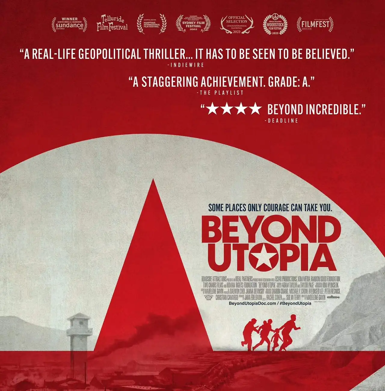 그가 진행한 실제 탈북 과정이 다큐멘터리 영화 ‘비욘드 유토피아(Beyond Utopia)’로 제작돼 올해 초 공개되자 세계는 경악했다. 1월 미국 최고의 독립영화제 ‘선댄스영화제’ 관객상을 수상했고, 지난 1일 ‘우드스톡영화제’에서는 베스트 다큐멘터리상을 받았다. ‘크리틱스 초이스 다큐멘터리 어워즈’ 4개 부문 후보에도 이름을 올렸다. 오는 23~24일 미국 전역 600여 극장에서 상영된다. 자유의 열망이 더 멀리 알려질 것이다. 영상 속에서 한 탈북자가 증언한다. “북한 정권은 우리가 낙원에 살고 있다고 말했지만, 우리는 거대한 감옥에 갇혀 있었다.” 도망치려면 죽기를 각오해야 한다.