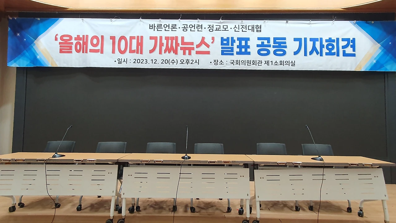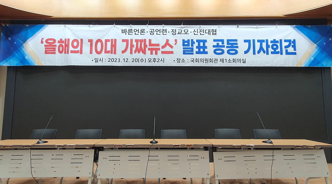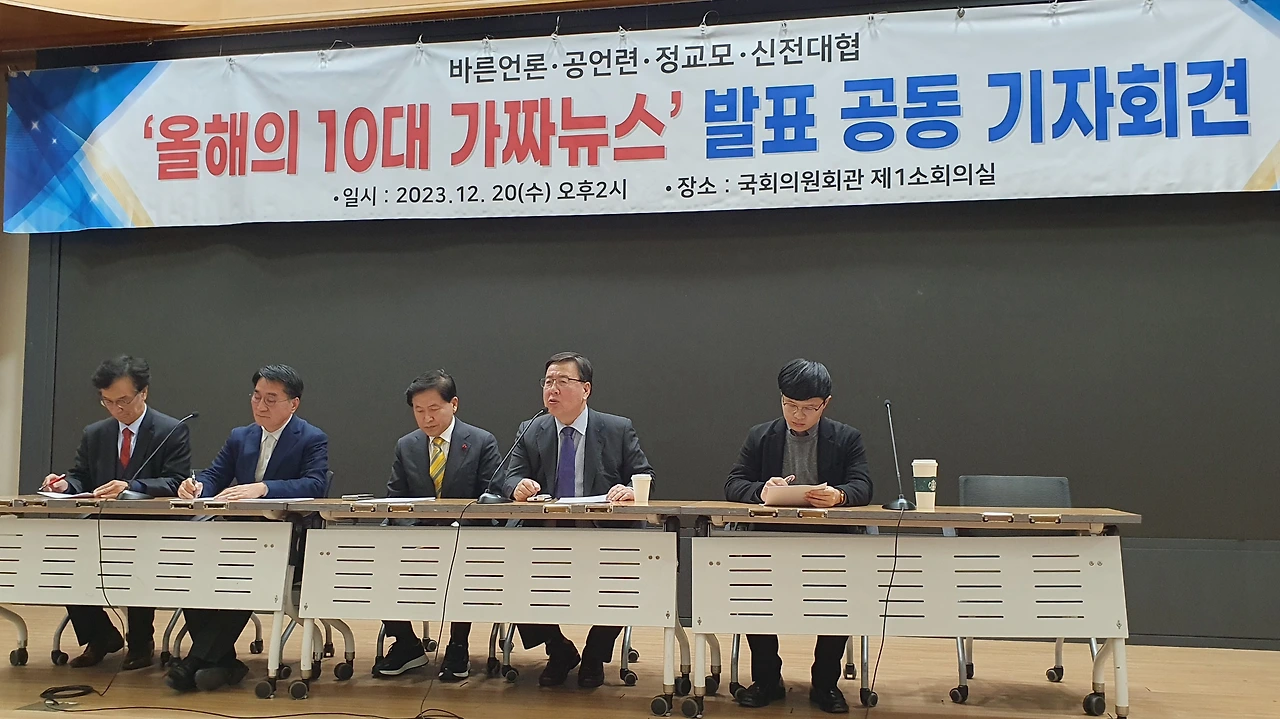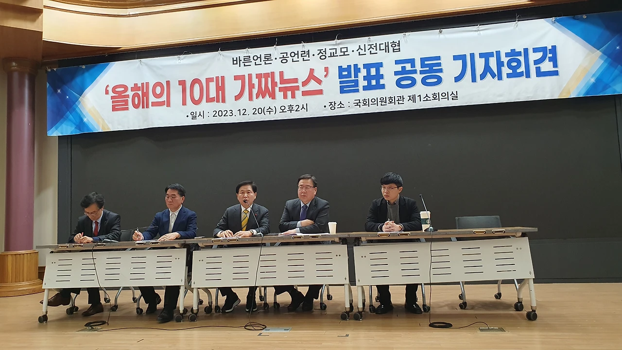 가짜뉴스 근절에 앞장서온 바른언론시민행동(공동대표 오정근 김형철), 공정언론국민연대(공동대표 오정환 김대회), 사회 정의를 바라는 전국교수모임(공동대표 조성환), 신전대협(공동의장 김건 이범석) 등 네 단체는 20일 서울 여의도 국회의원회관 제1회의실에서 공동기자회견을 갖고 '올해의 10대 가짜뉴스'를 발표했다.
