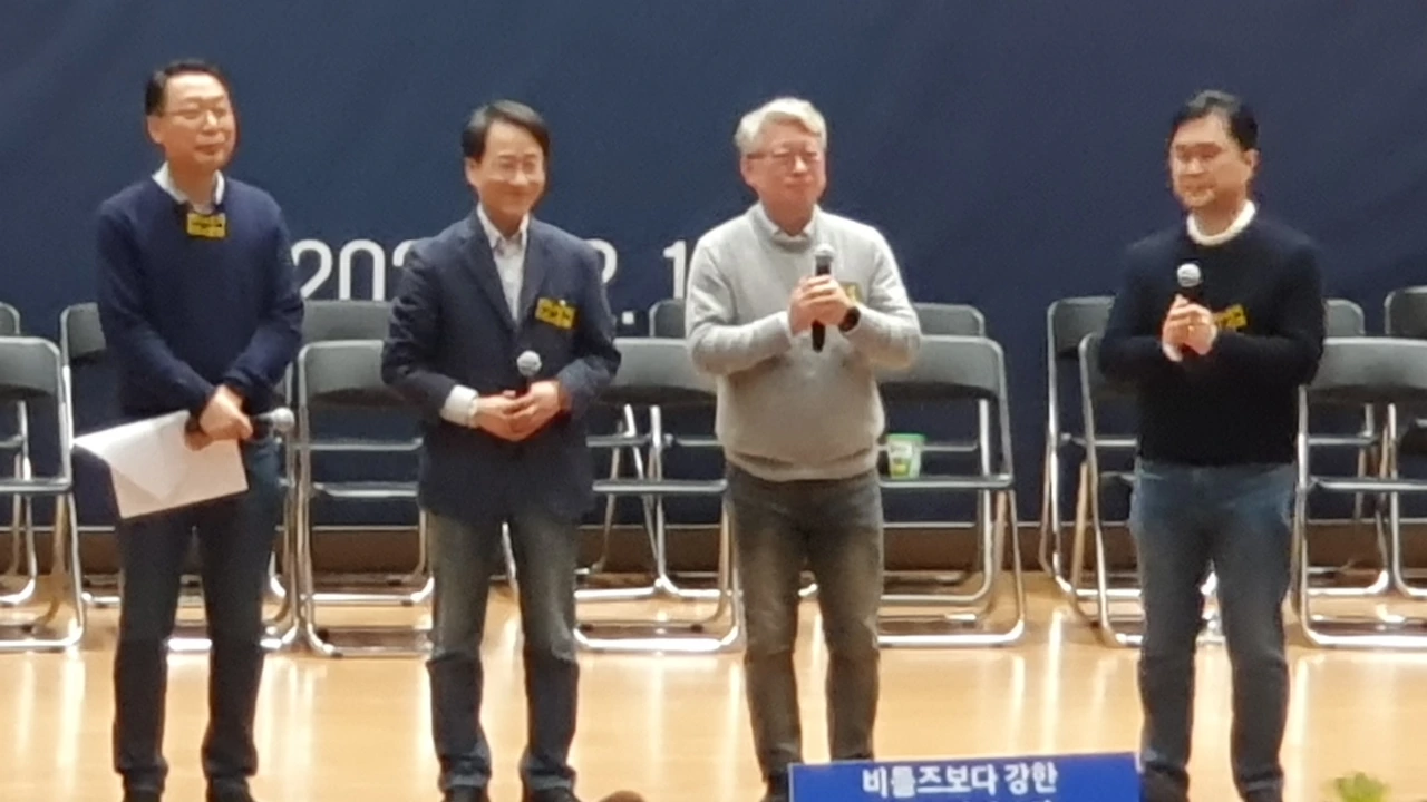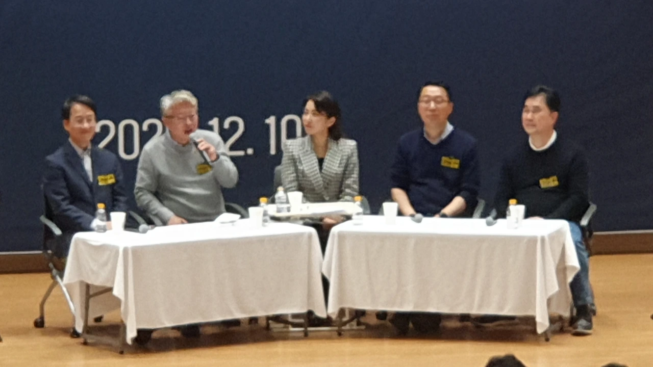 - 민주당 이원욱 의원의 초대를 받고 그들이 어떤 메시지를 던질까 경청하려고 가봤다. 조금 늦게 도착해서인지 행사장은 이미 입추의 여지없이 가득 차 있어 들어가기가 힘들 정도였다. 할 수 없이 가장 뒷편에서 내려다봤는데, 역시 메시지는 특별히 기대할말한 것이 없었다. 대한민국 여의도 국회의원들이 죄다 동일하지만, 적대적 진영정치를 비판하면서 이를 끝장내고 통합정치를 하자고 목소리를 높이면서 막상 그 상대 정당 관련 이야기를 할 때는 적대감을 여실히 드러내는 그런 내로남불 수준. 결국 그들 역시 대한민국 여의도 정치 그 진흙탕에서 빠져나올 생각은 전혀 없이 뒹굴고 있는 것이다.