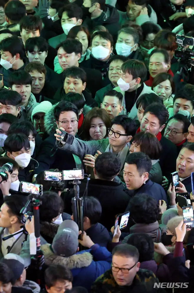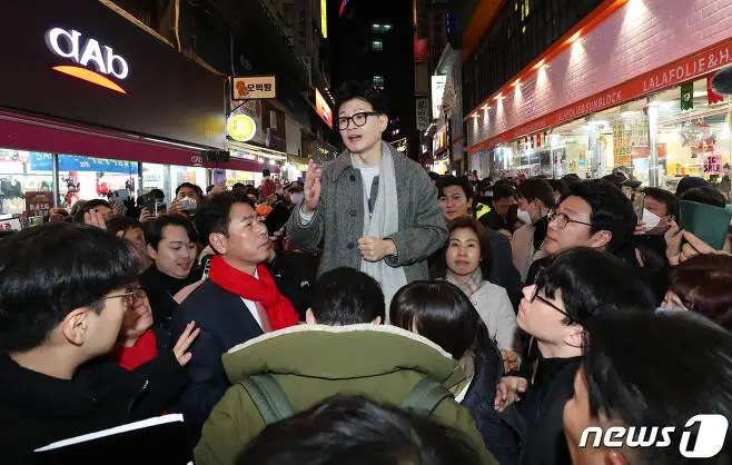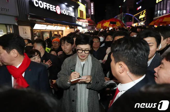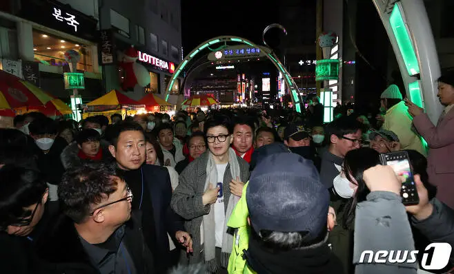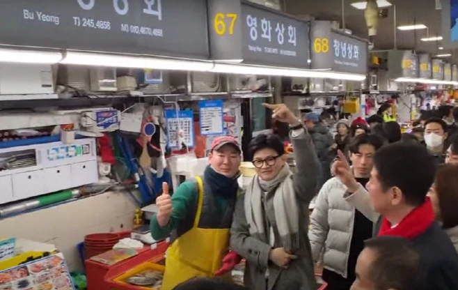 부산이 뒤비졌다. 한동훈 방문에 부산 BIFF광장 마비..한동훈, 롯데 자이언츠 코리아시리즈 우승 '1992' 맨투맨 입고 자갈치시장 방문