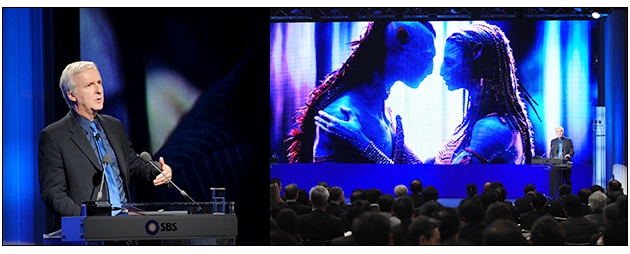 ▲ SDF2010 기조연사 영화 ‘아바타’ 감독 제임스 카메론, 당시 SDF에서는 눈으로 보는 것과 가장 비슷한 3D영상기술이 모든 실사 촬영에 접목될것으로 예측했으나 제대로 자리잡지 못하고 3D애니메이션 영화에서만 명맥을 이어감