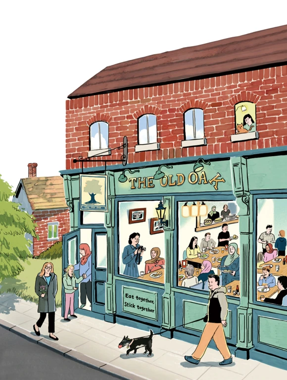 가장 강경한 집단은 올드 오크의 단골이자 TJ와 오래도록 유대를 쌓았던 친구들이다. 히잡을 쓴 여성들을 비하하며 "펍에 두건 대가리 들이지 말라"고 말하거나 "마을에 받아줘봐야 저들은 모스크(이슬람교 사원)나 지을 것"이라고 빈정대는 것은 예사다. 이들은 사정도 정확히 모르는 사람들이 소셜미디어를 통해 자신들과 같은 사람을 인종차별주의자라고 언급한다며 불쾌감을 드러내기 바쁘다. 그사이 TJ와 일부 주민은 묵묵하게 야라와 그의 가족, 난민 공동체를 돕는 활동을 이어간다.