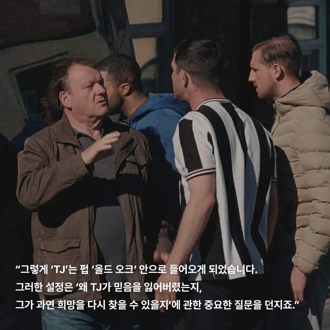 이후 모종의 음모로 연회장의 문이 다시 닫히기도 하고, TJ 역시 마음을 크게 다치는 일이 일어나기도 한다. 노력이 수포로 돌아가는 것. 어쩌면 이것이 더 현실에 가까운 풍경이다. 다만 《나의 올드 오크》는 그 안에서 당장의 화합까진 어렵더라도 을과 을의 또 다른 갈등이 필요치 않다는 사실을 정확히 지적한다. "삶이 힘들 때 우린 희생양을 찾아. 절대 위는 안 보고 아래만 보면서 우리보다 약자를 비난해. 언제나 그들을 탓해. 약자의 얼굴에 낙인을 찍는 게 더 쉬우니까." TJ의 대사는 불필요한 갈등과 혐오가 있는 풍경을 가로지른다.