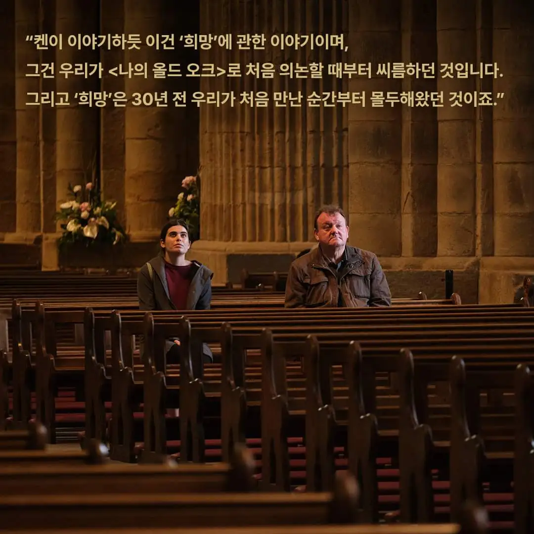 그럼에도 《나의 올드 오크》 속 현명한 이들은 고통 끝에 찾아올 희망을 믿는다. 일상과 공동체를 재건하고, 혐오 대신 우정을 발휘하는 일은 쉽지 않다. 하지만 방법이 없는 것은 아니다. 가장 풍족하고 강한 자가 발휘하는 힘으로만 가능한 것도 아니다. TJ와 야라는 약간의 토양을 다져두면 다시 폭격을 맞아 폐허가 되는 과정의 연속에서, 의심하고 흔들리면서도 다시 흙을 그러모으듯 내일을 다지려는 사람들이다. 짧지만 지속적인 절망들을 품은 채로 조금씩 회복하려는 노력만이 희망이라 부를 수 있는 그 무엇일지 모른다.