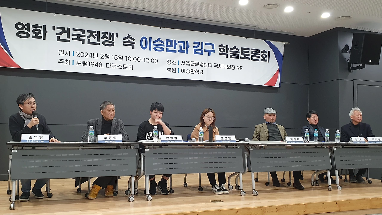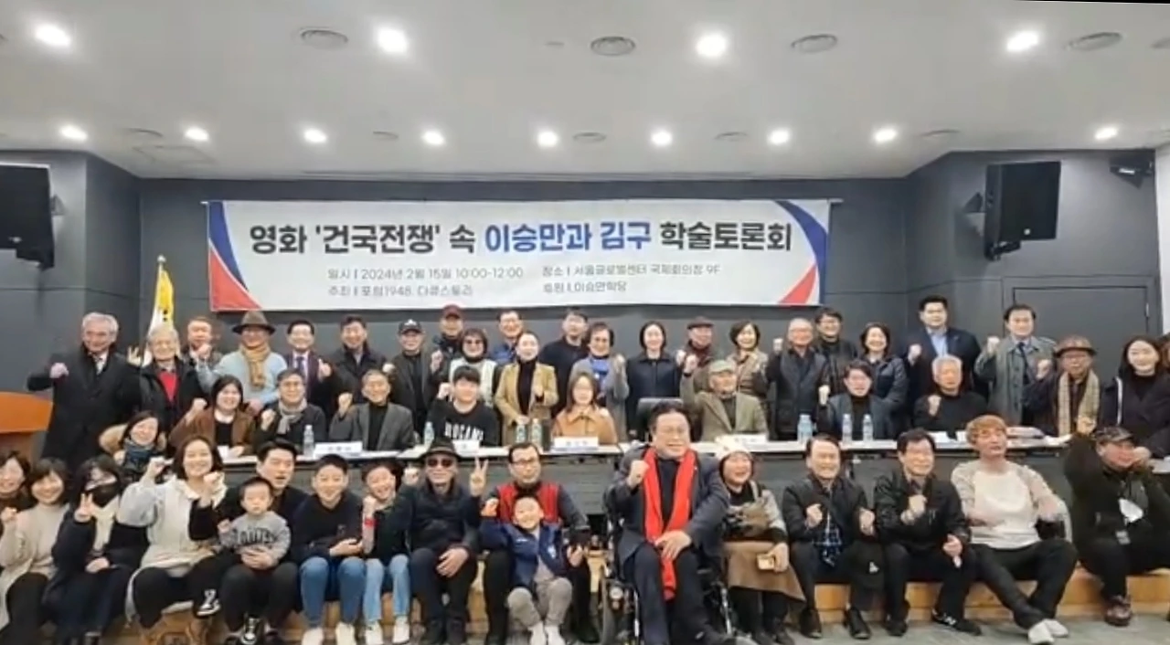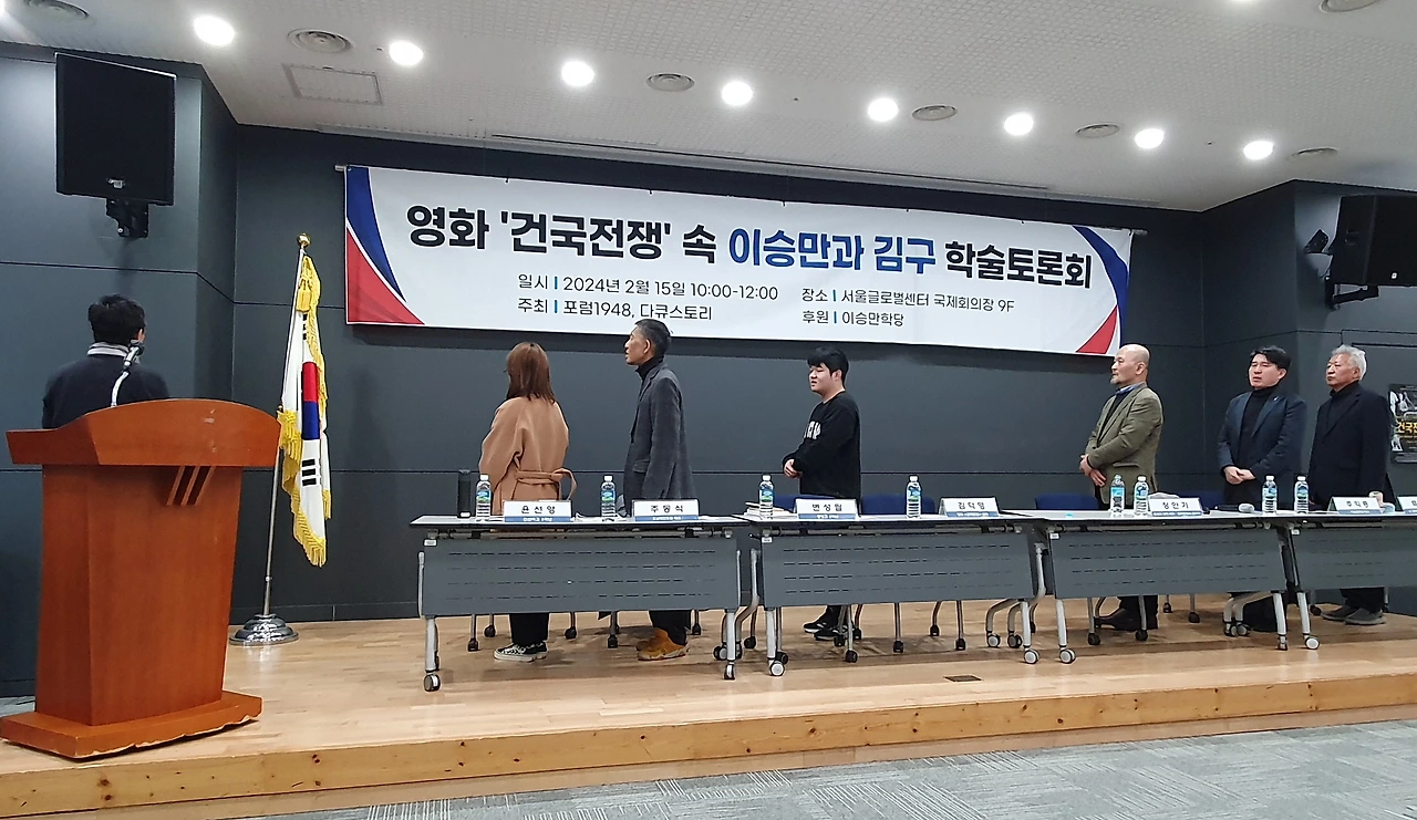 김덕영 감독이 진행을 맡은 이날 토론회는 ‘6.25전쟁과 런승만의 실체’ ‘김구 비망록의 진실’ 등을 주제로 국민이 속고 있는 허황된 이야기의 실체를 드러내는 데 초점을 맞췄다. 특히 ‘이승만 신드롬’을 불러일으킨 다큐멘터리 영화 ‘건국전쟁’의 감독과 출연진이 직접 참여한 가운데 영화 속 쟁점이 됐던 ‘한강 폭파 사건’의 실체와 김구의 실체를 재조명함으로써 현실성을 더 높였다는 평가가 이어졌다.