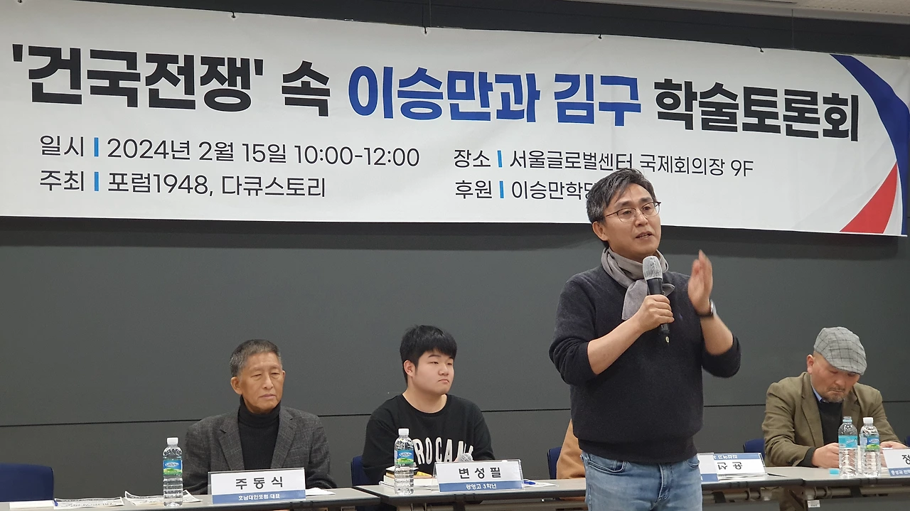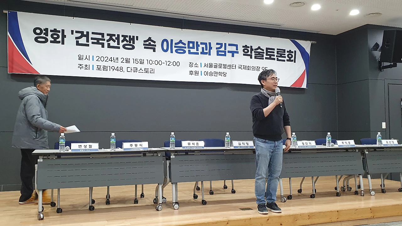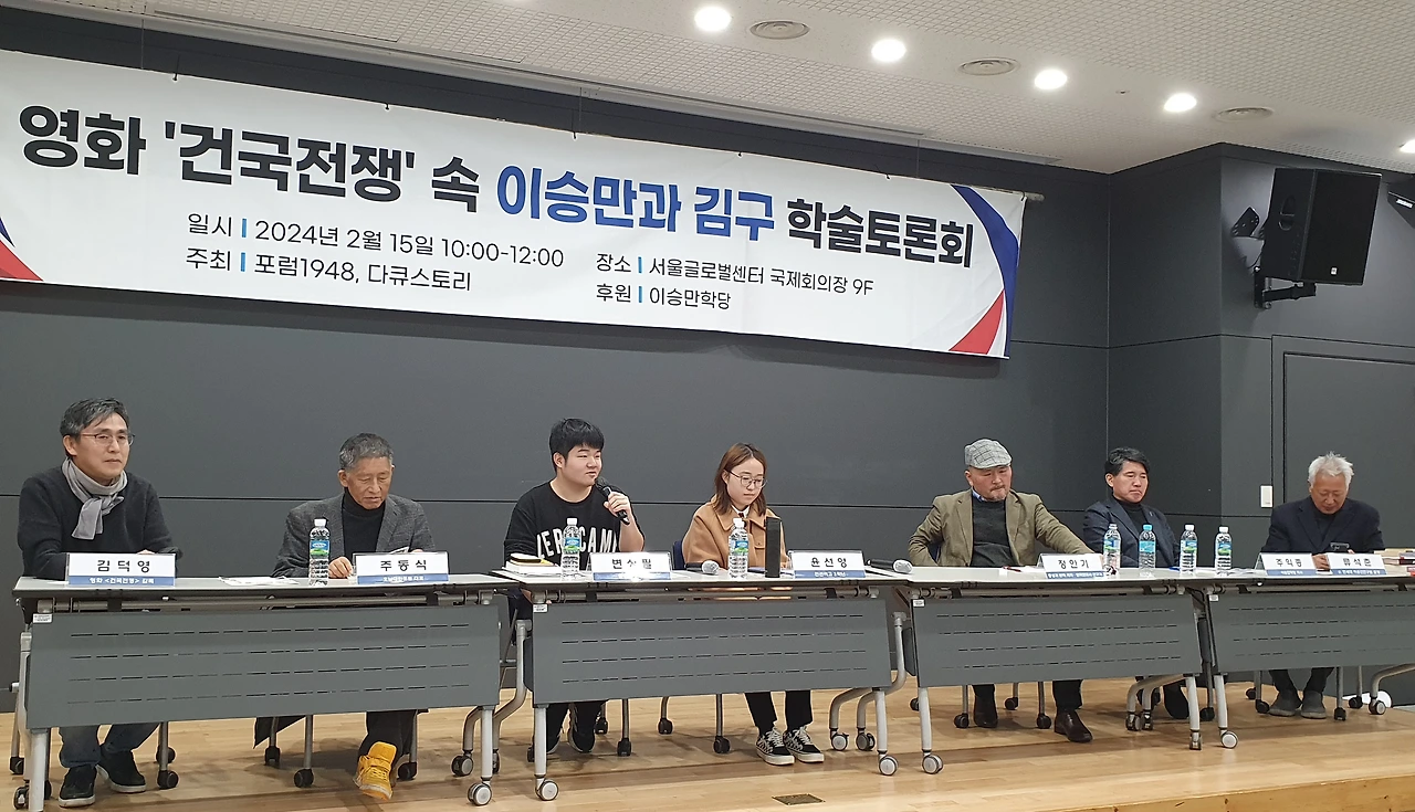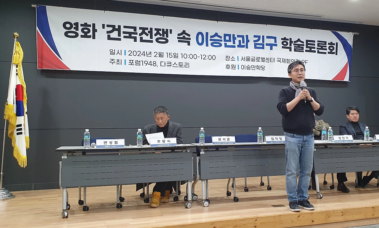 김덕영 감독이 진행을 맡은 이날 토론회는 ‘6.25전쟁과 런승만의 실체’ ‘김구 비망록의 진실’ 등을 주제로 국민이 속고 있는 허황된 이야기의 실체를 드러내는 데 초점을 맞췄다. 특히 ‘이승만 신드롬’을 불러일으킨 다큐멘터리 영화 ‘건국전쟁’의 감독과 출연진이 직접 참여한 가운데 영화 속 쟁점이 됐던 ‘한강 폭파 사건’의 실체와 김구의 실체를 재조명함으로써 현실성을 더 높였다는 평가가 이어졌다.