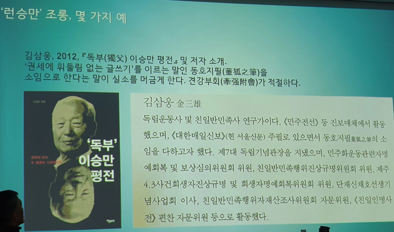 “‘런승만 논란’은 완전한 거짓이자 이승만 건국 대통령을 저주하고 대한민국을 흠집 내려는 좌파들의 공작입니다.”