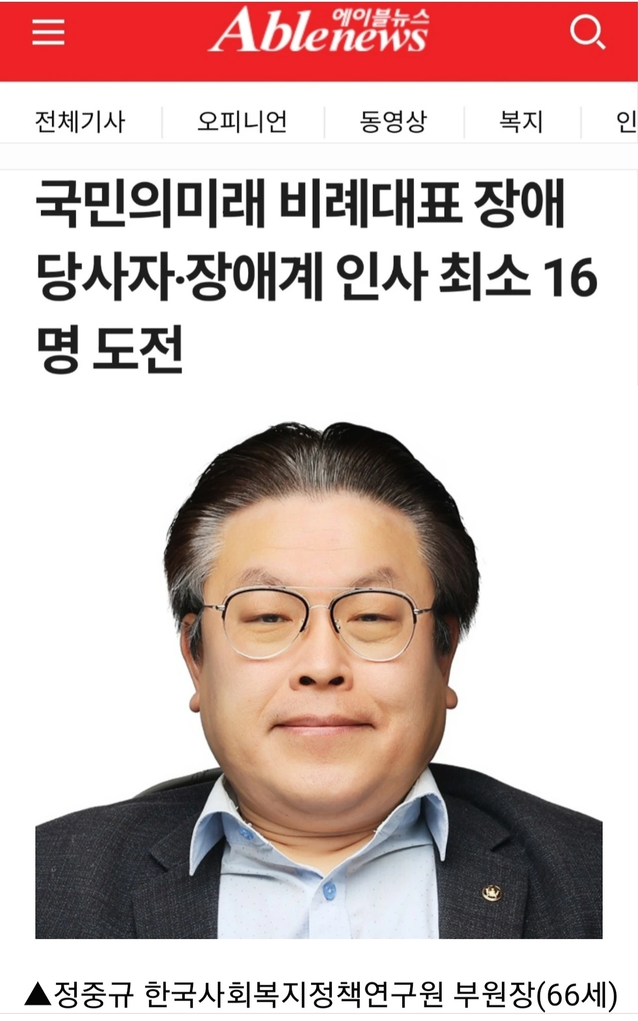 국민의힘의 비례대표 위성정당인 국민의미래 제22대 총선 비례대표에 도전한 장애인을 비롯한 장애계 인사가 최소 16명인 것으로 확인됐다.