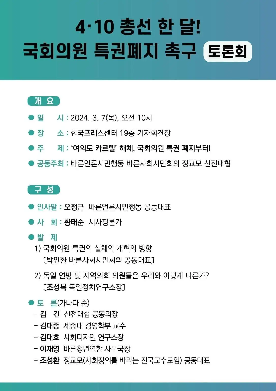 4.10 총선 한 달! 국회의원 특권폐지 촉구 토론회