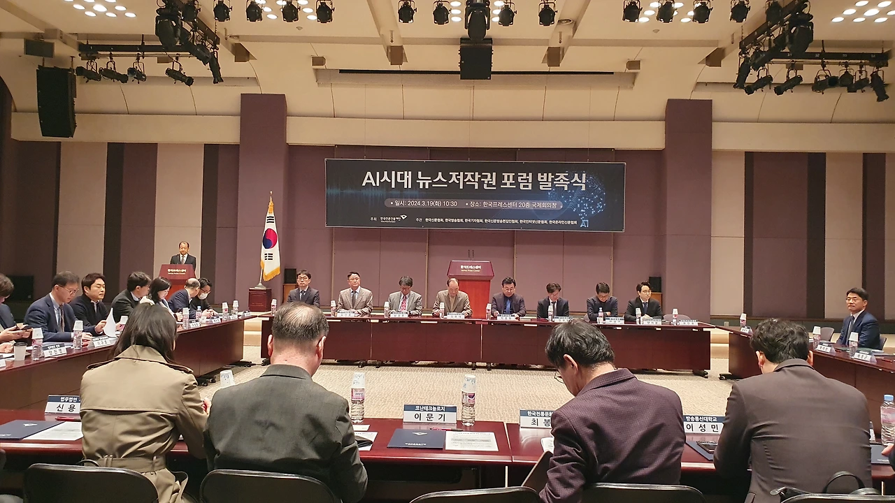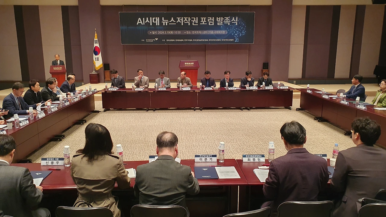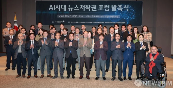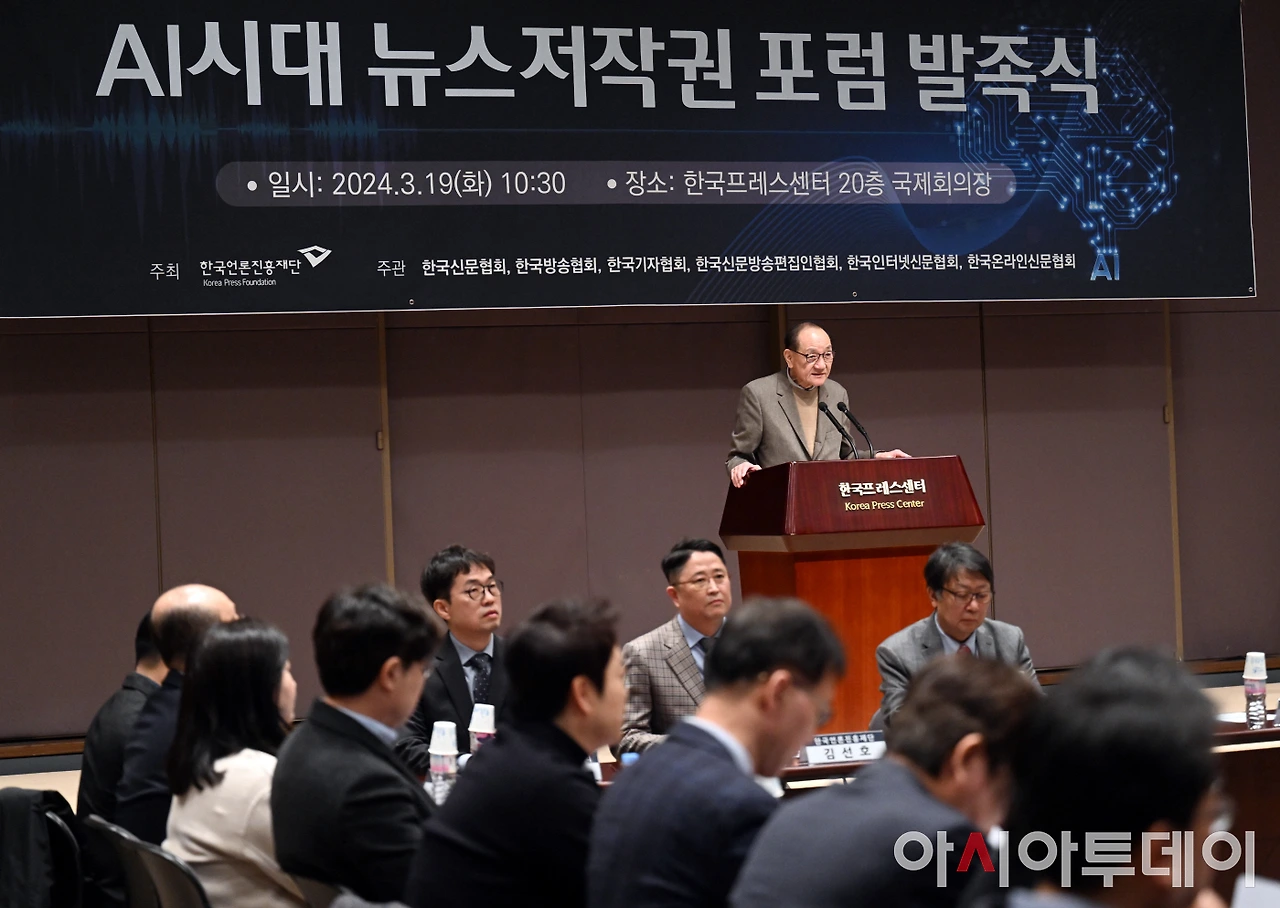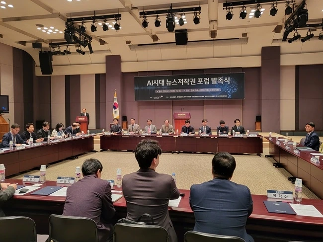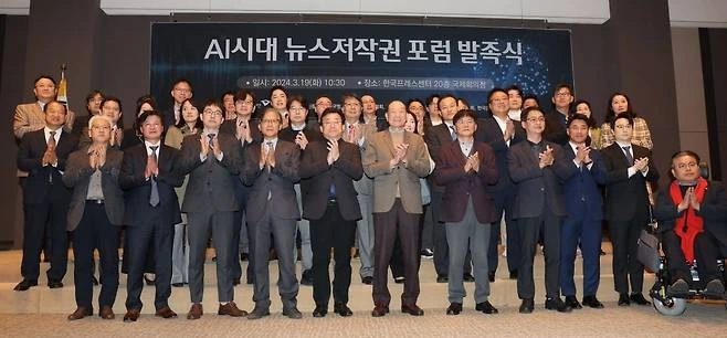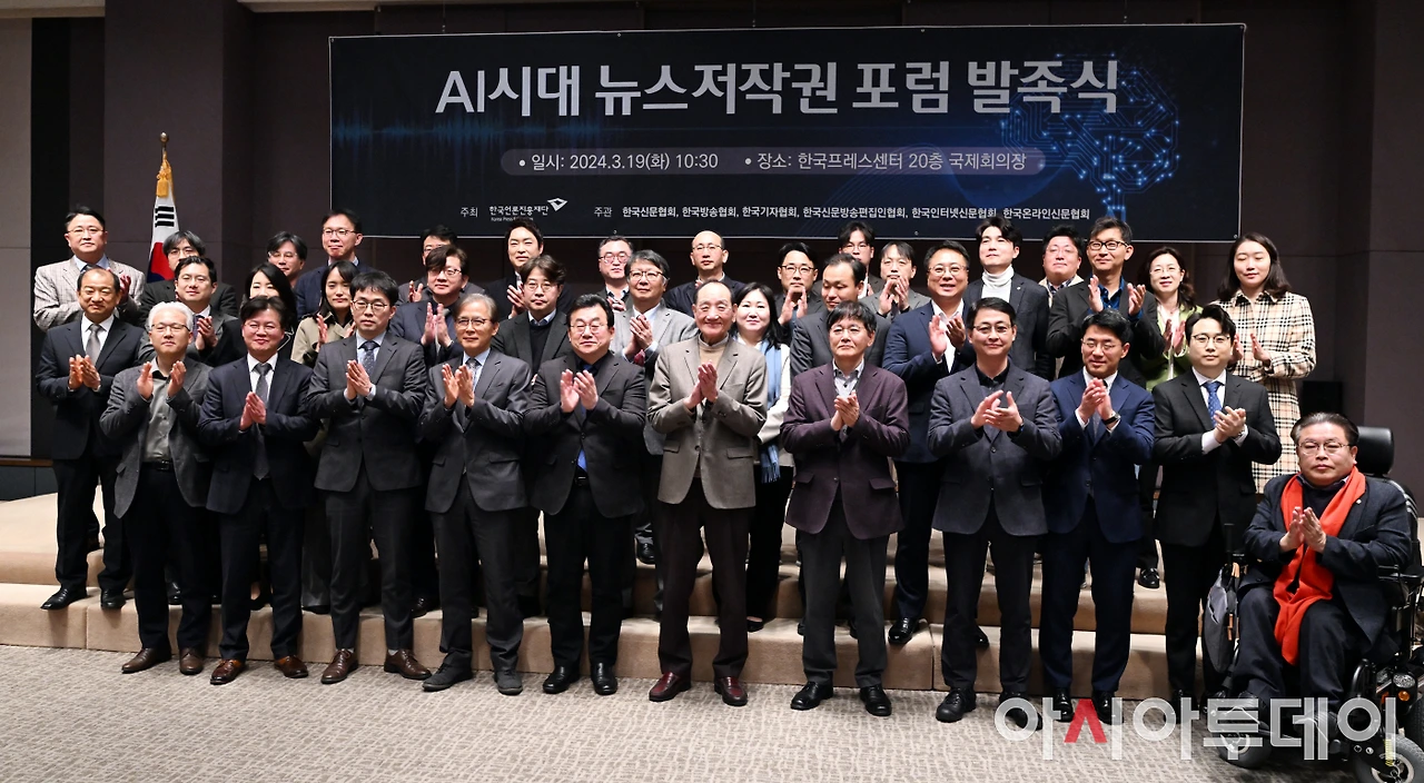 한국언론진흥재단은 19일 오전 한국프레스센터 20층 국제회의장에서 ‘AI시대 뉴스저작권 포럼’ 발족식을 개최했다. 이 포럼은 뉴스저작권 보호와 생성형AI 기술 등 디지털환경 변화에 대한 대응 방안을 마련함으로써 건강한 언론 환경을 조성하기 위한 취지로 발족됐다. 한국언론진흥재단 주최, 한국신문협회·한국방송협회·한국기자협회·한국신문방송편집인협회·한국인터넷신문협회·한국온라인신문협회의 공동주관으로 향후 6개월간 진행된다.