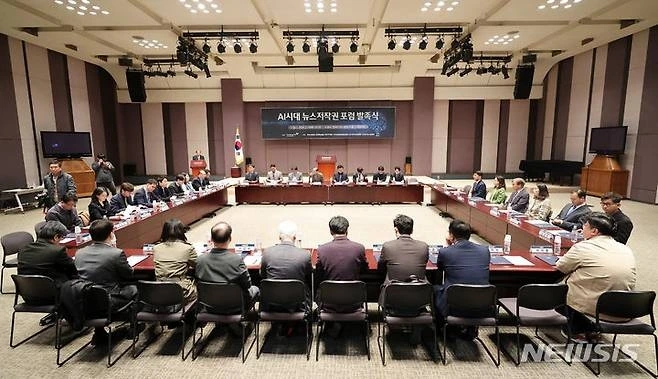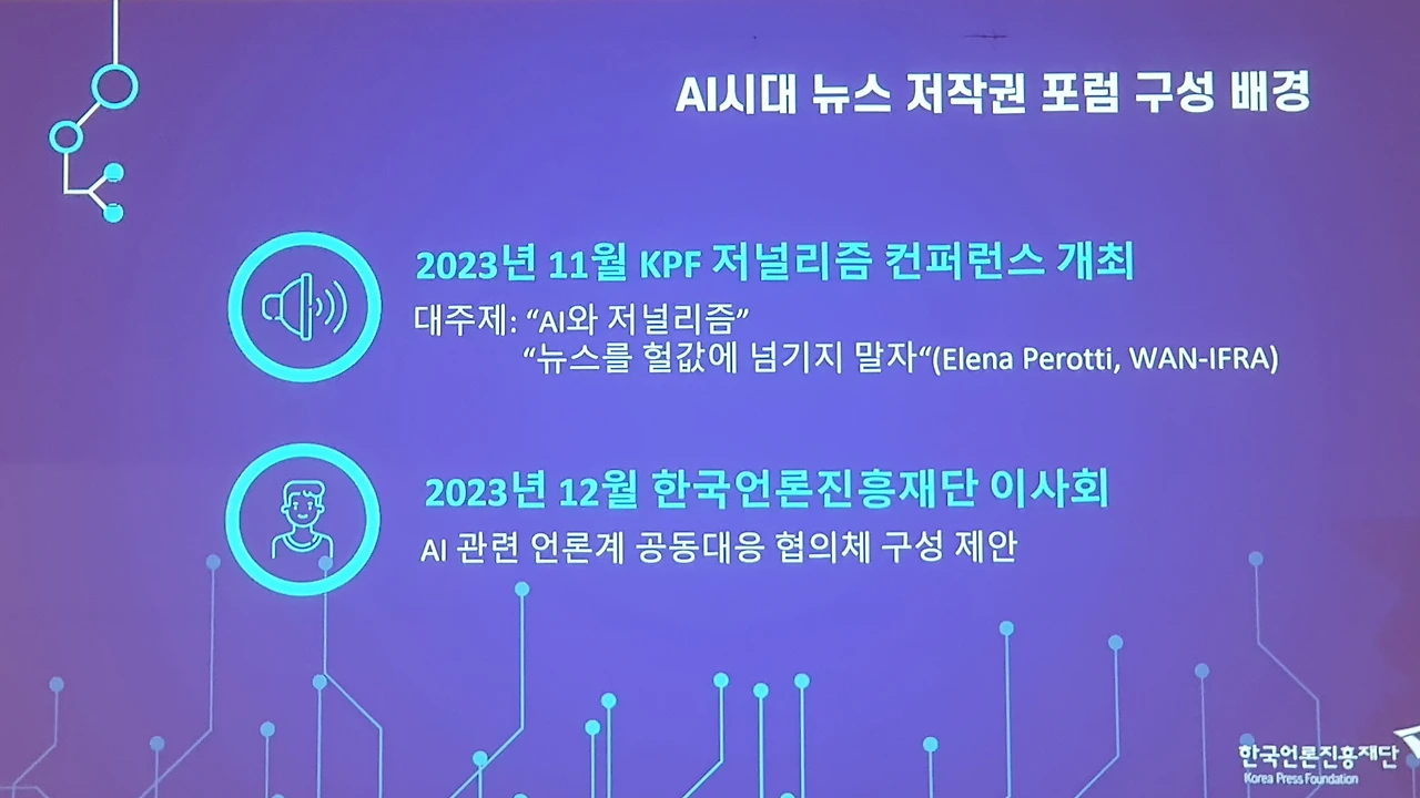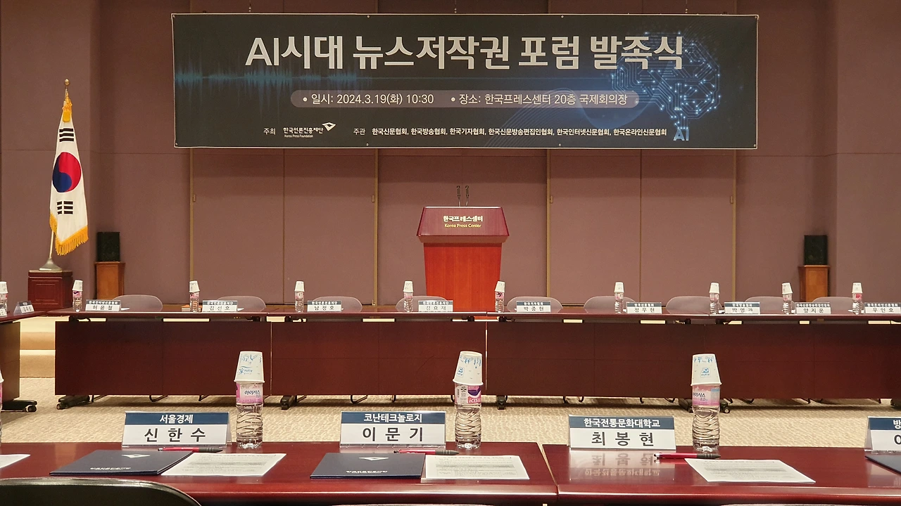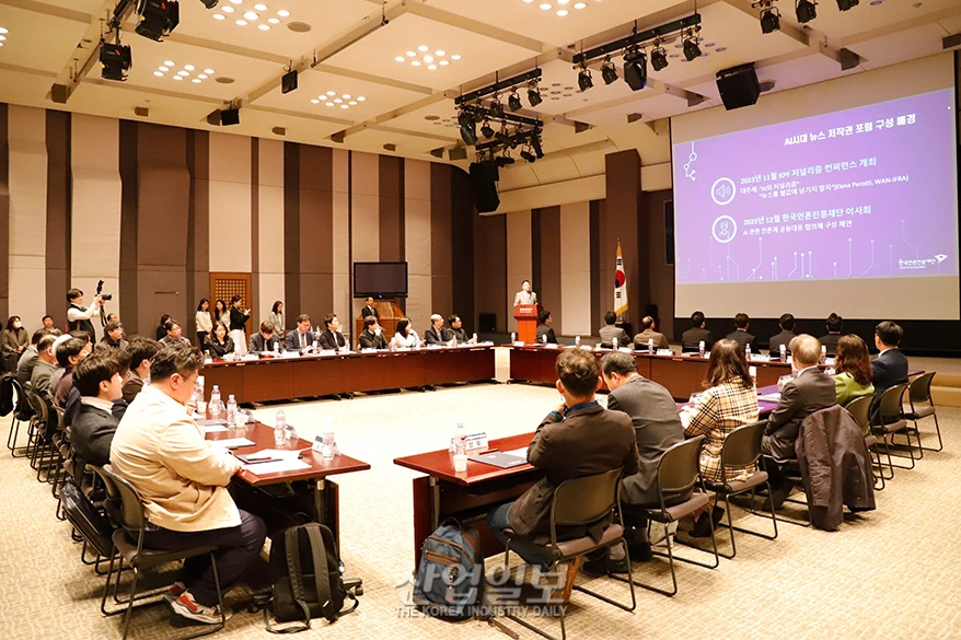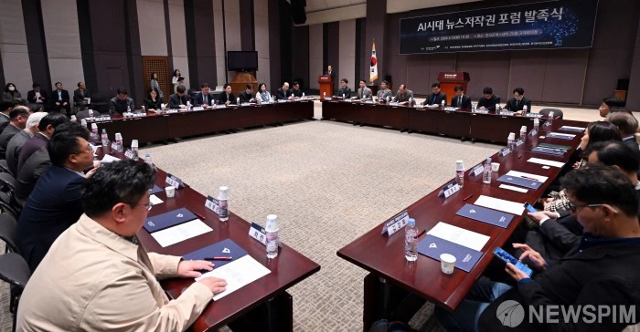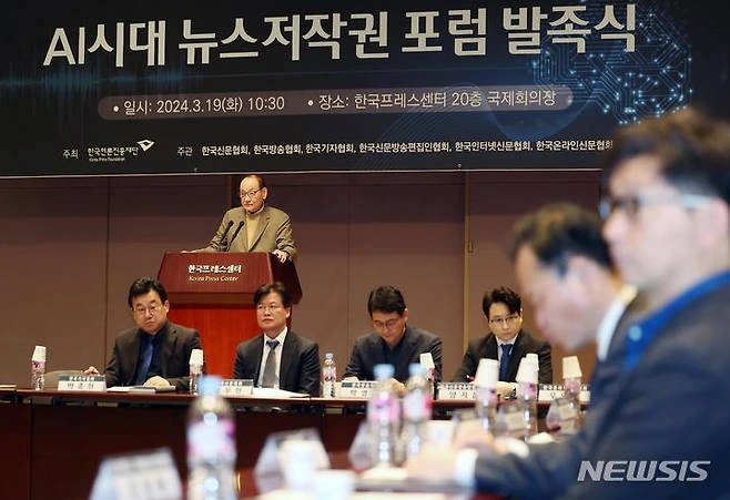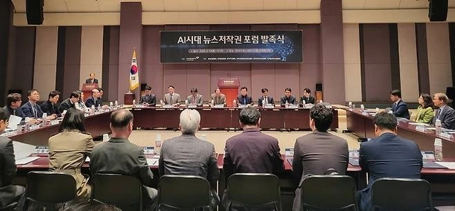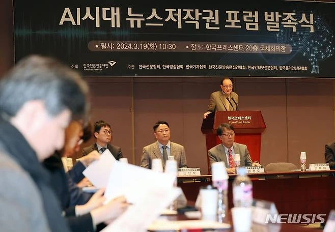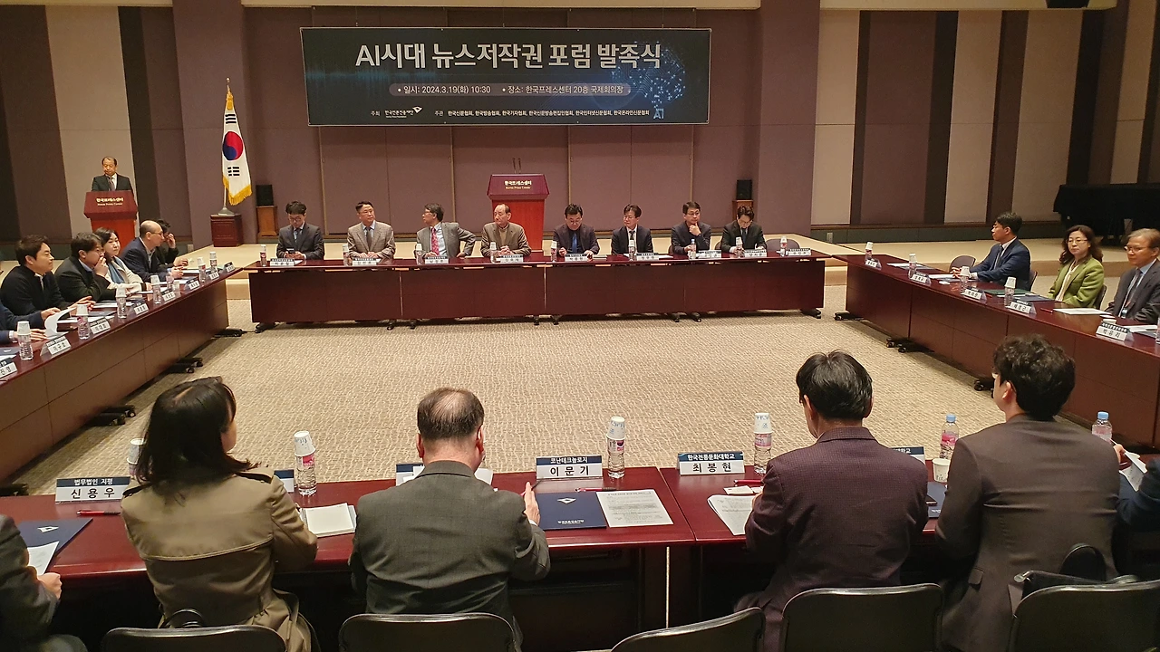 한국언론진흥재단은 19일 오전 한국프레스센터 20층 국제회의장에서 ‘AI시대 뉴스저작권 포럼’ 발족식을 개최했다. 이 포럼은 뉴스저작권 보호와 생성형AI 기술 등 디지털환경 변화에 대한 대응 방안을 마련함으로써 건강한 언론 환경을 조성하기 위한 취지로 발족됐다. 한국언론진흥재단 주최, 한국신문협회·한국방송협회·한국기자협회·한국신문방송편집인협회·한국인터넷신문협회·한국온라인신문협회의 공동주관으로 향후 6개월간 진행된다.