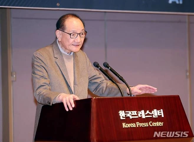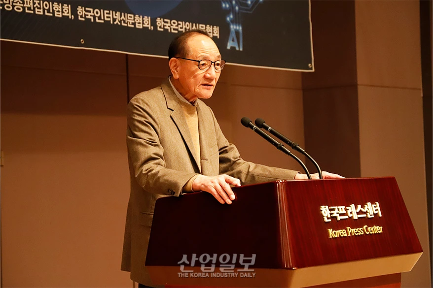 김효재 한국언론진흥재단 이사장은 AI 시대를 맞아 언론인들이 힘을 모아야 이 위기를 극복할 수 있다고 당부하며 포럼의 시작을 알렸다.