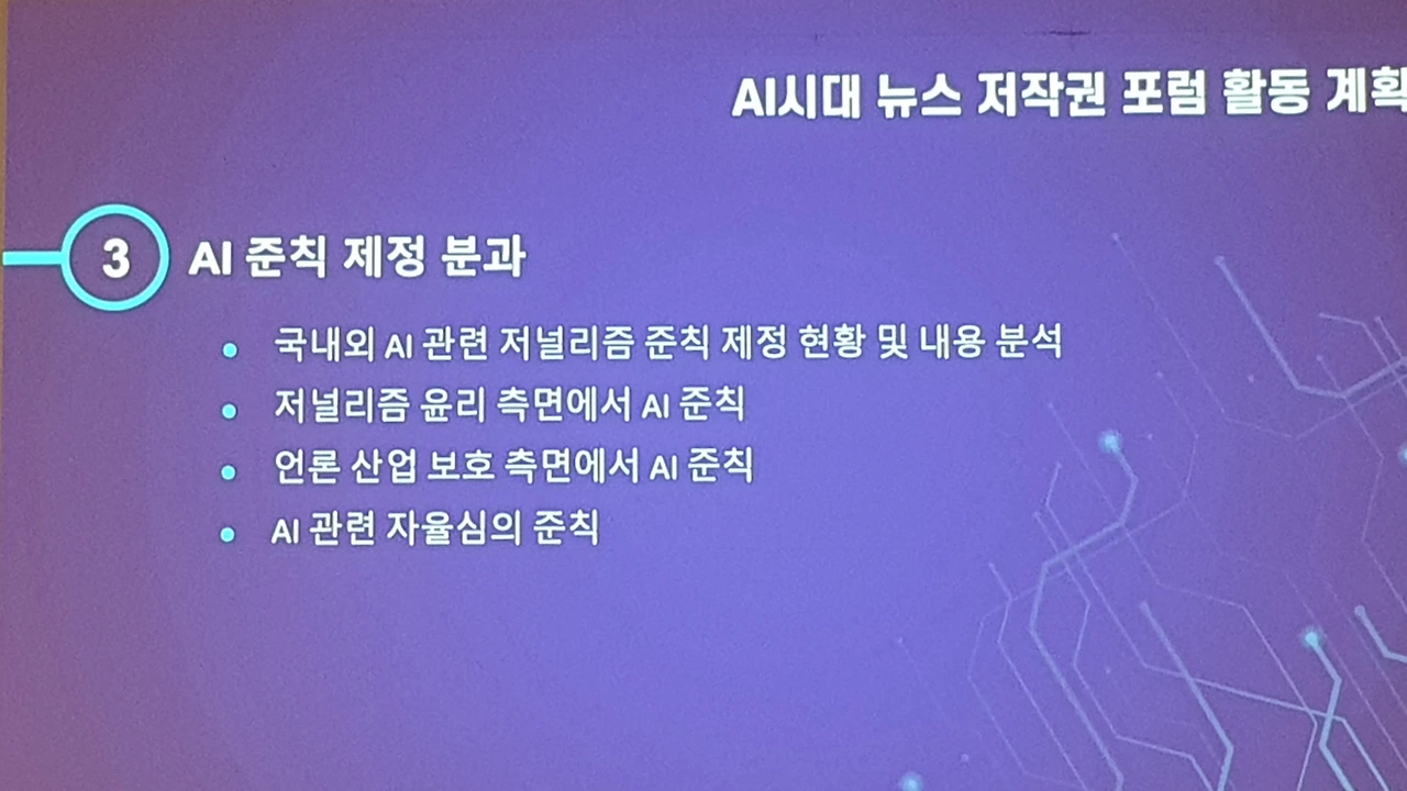 이번 포럼은 6개 단체에서 추천한 언론계, 언론 유관기관, 학계 전문가들이 모여 ‘법 제도 개선 및 지원 정책’ ‘대가 산정 및 상생협력’ ‘AI준칙 제정’분과로 구성된다. 각 분과는 ‘AI관련 뉴스저작권법 개정 법안(초안) 마련’ ‘적정 대가산정 모델 설계’ ‘언론계 AI활용 준칙(가이드라인) 제정’ 등을 목표로 세웠다.