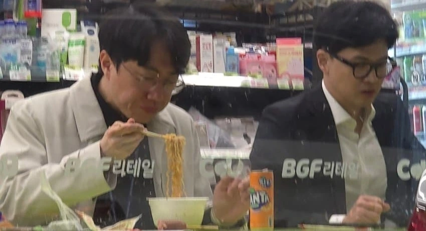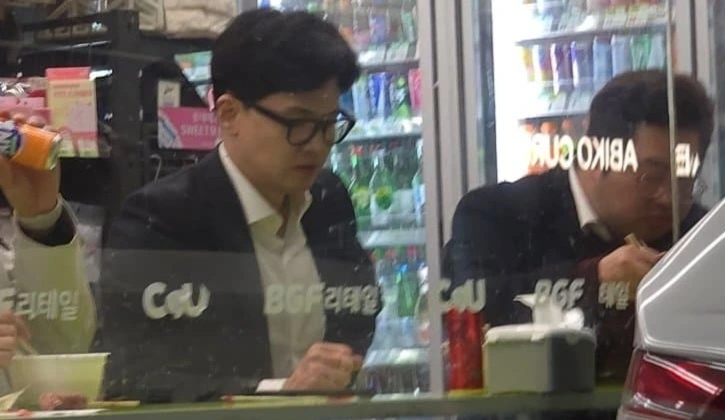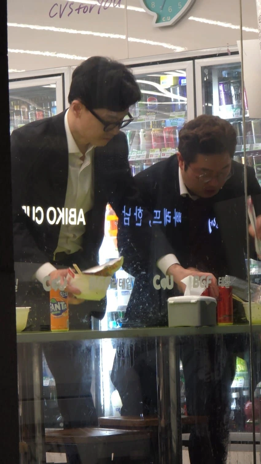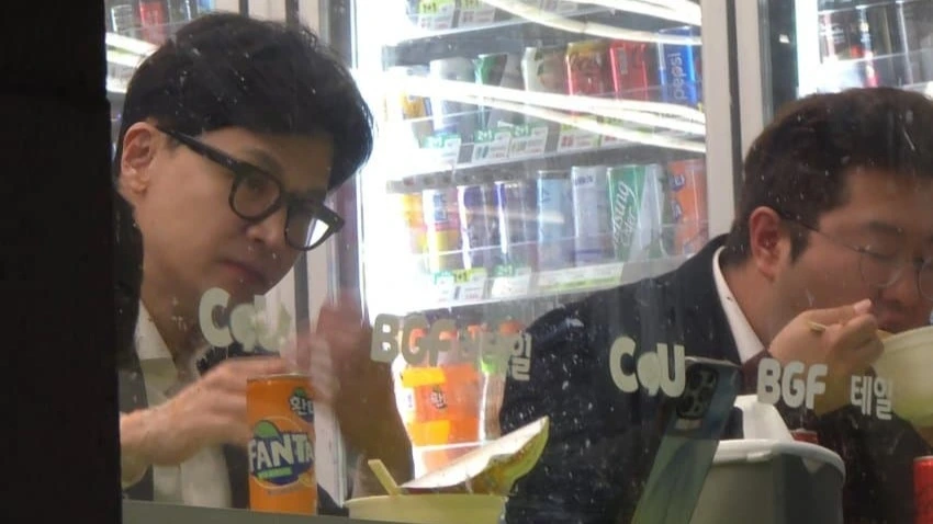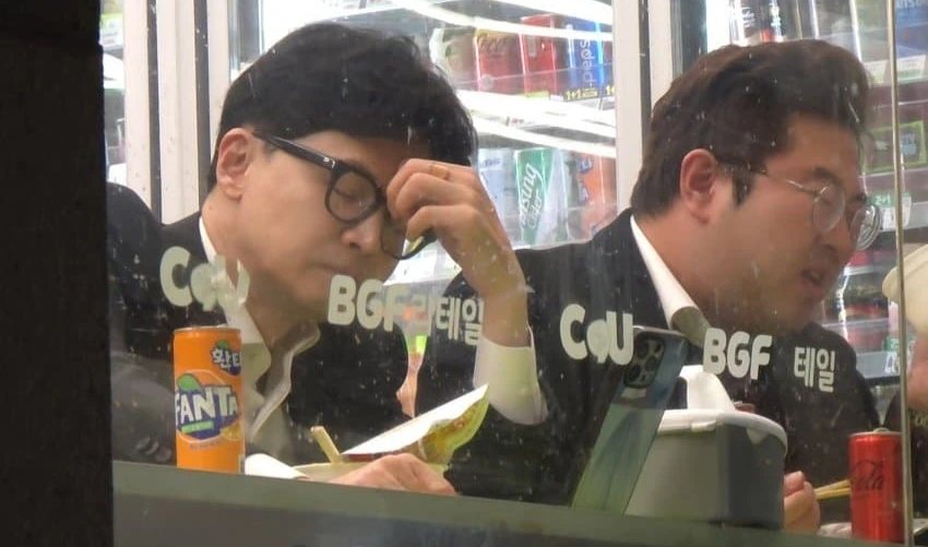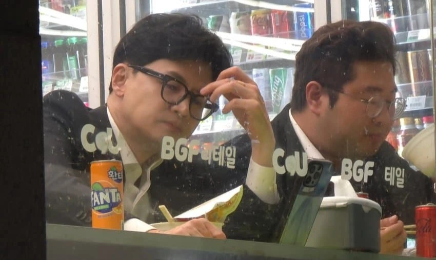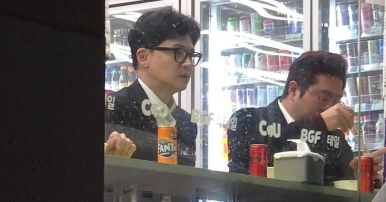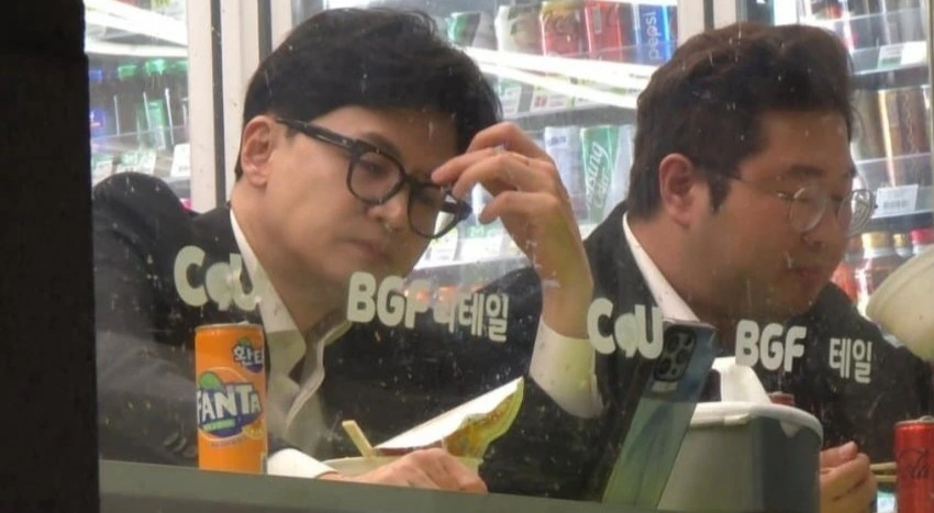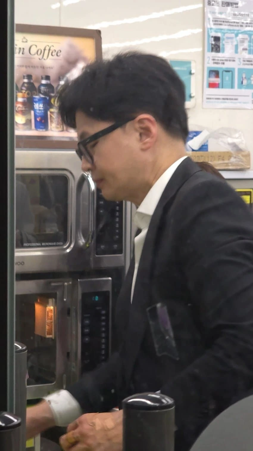 한동훈, 수도권 유세 마치고 편의점서 컵라면 먹는 장면 포착…나흘째 수도권 유세 중 수행원과 함께