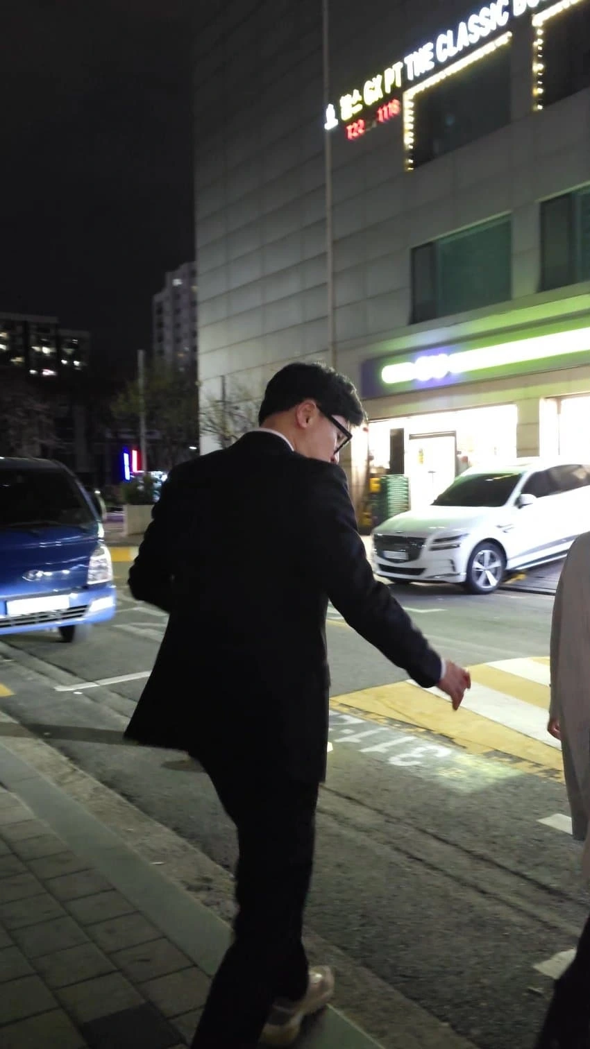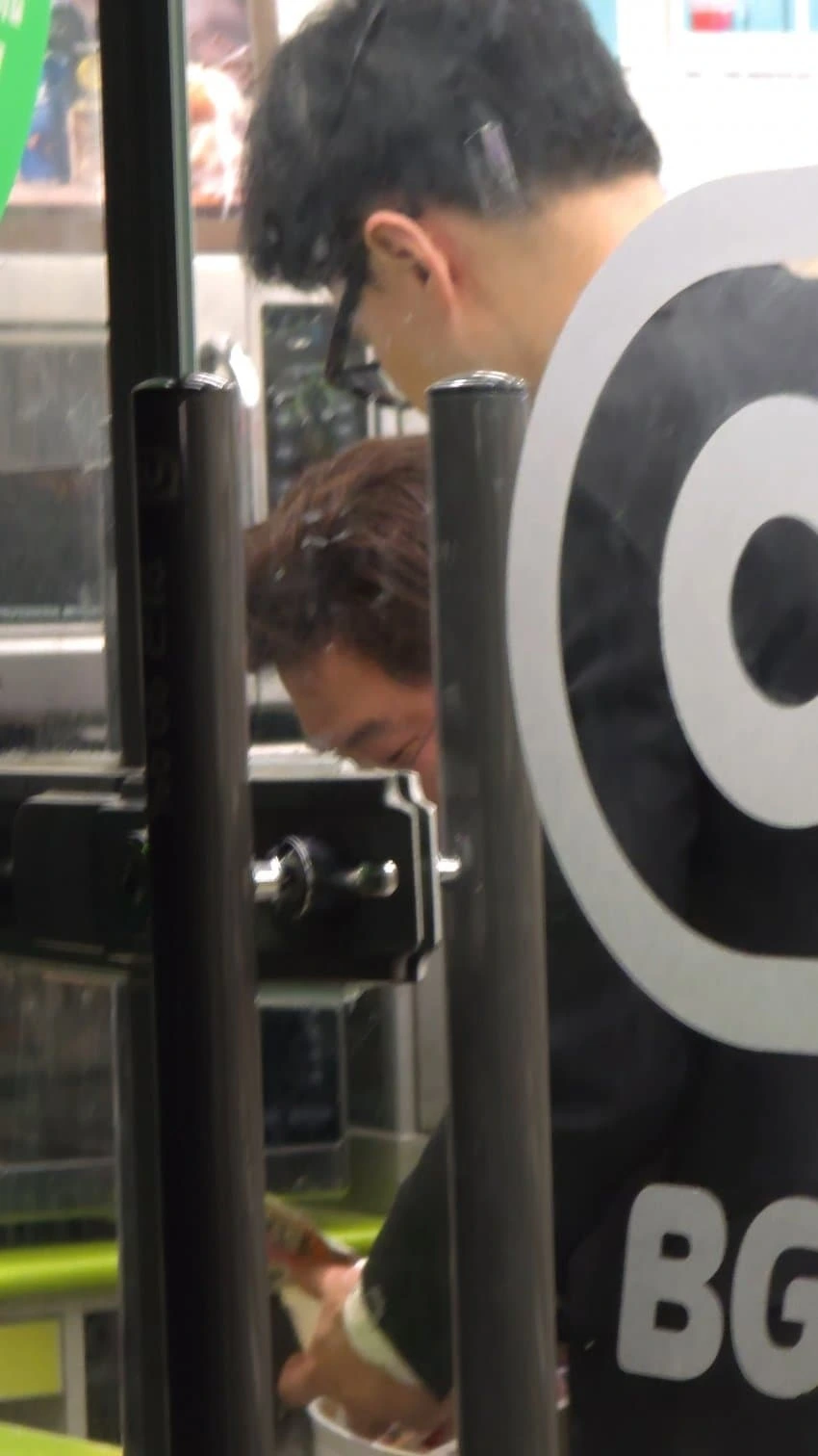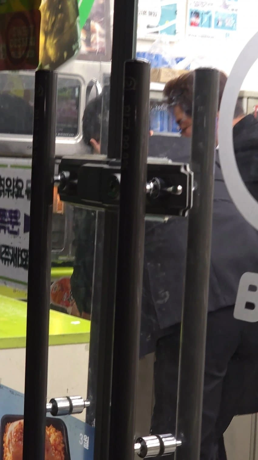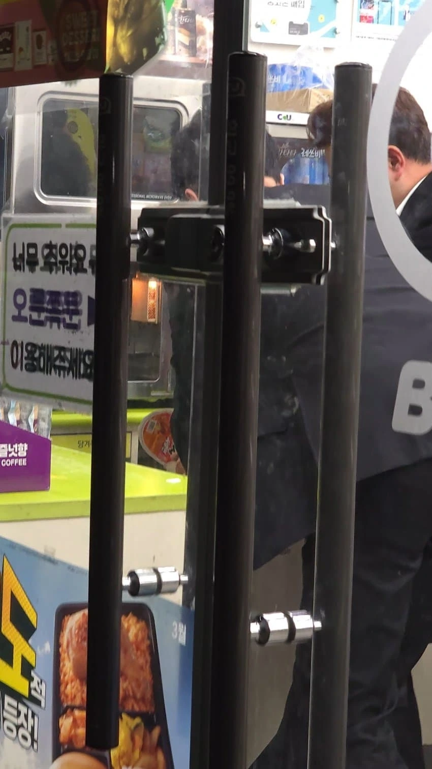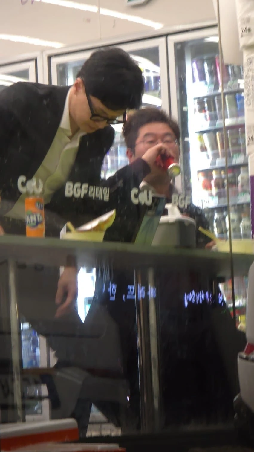 편의점 내부 벽시계에는 저녁 8시 30분을 지나고 있어, 이날 마지막 일정인 강남권 수서역 지원유세 이후인 것으로 보인다.