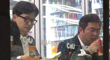 31일 한 인터넷 사이트 갤러리에 따르면 한 위원장이 국민의힘 수행비서와 함께 서울 시내 한 편의점에서 컵라면을 먹는 사진이 몇 줄의 글과 함께 올려졌다. 게재된 시간은 저녁 9시16분으로 돼 있다.