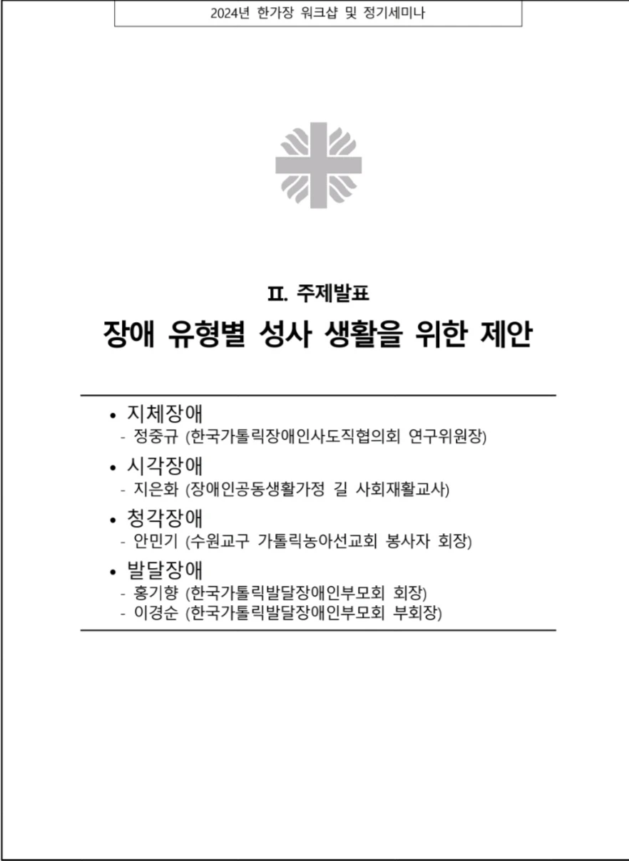 주관 : 한국천주교주교회의 사회복지위원회 가톨릭장애인사도직협의회 연구위원회