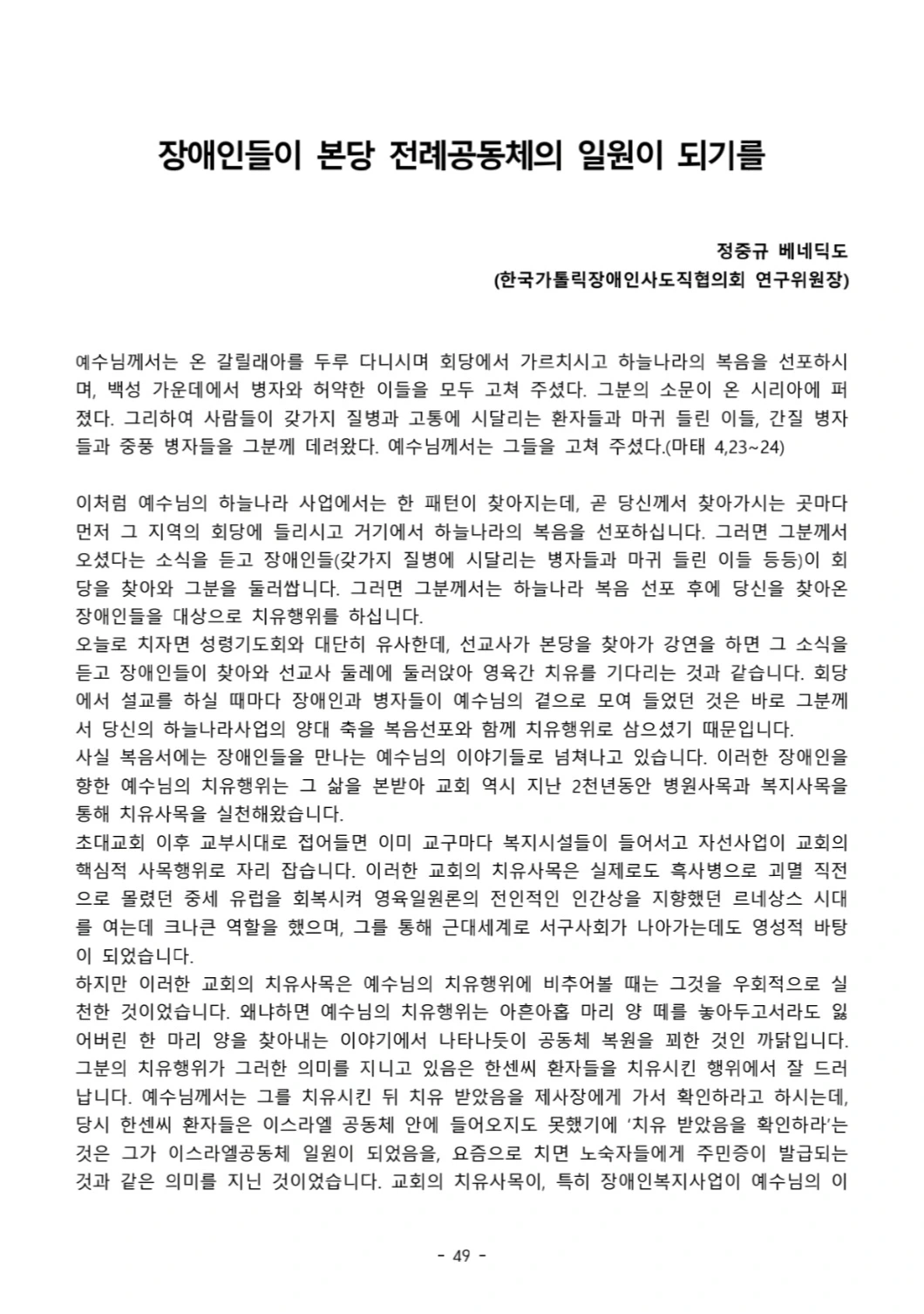 "장애인의 성사 생활을 위한 사목적 배려" / 정중규