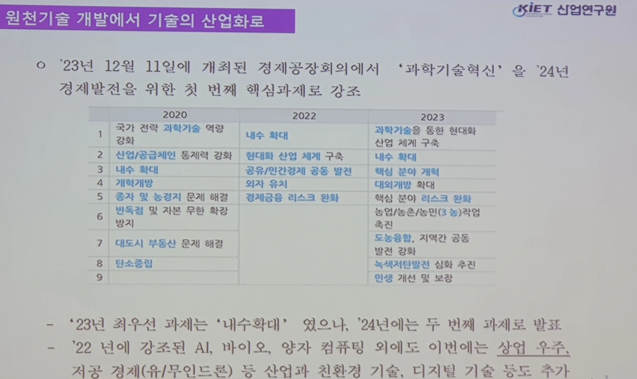 정덕구 니어재단 이사장은 "현재 미국 등 각국은 사생결단의 각오로 산업 정책 드라이브를 걸고 있다"며 "그러나 한국 정부의 최근 태도를 보면 현재와 같은 체제와 역할, 사기로 미국 상무부, 일본 경제산업성 등과 산업 전쟁을 치르기 어려워 보인다"고 지적했다. .