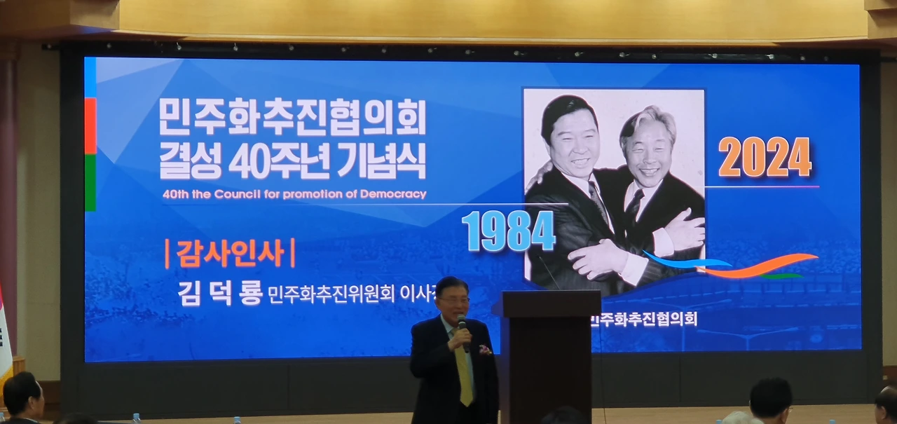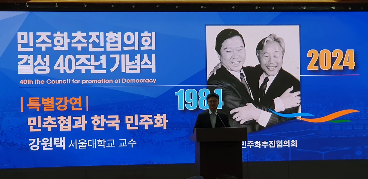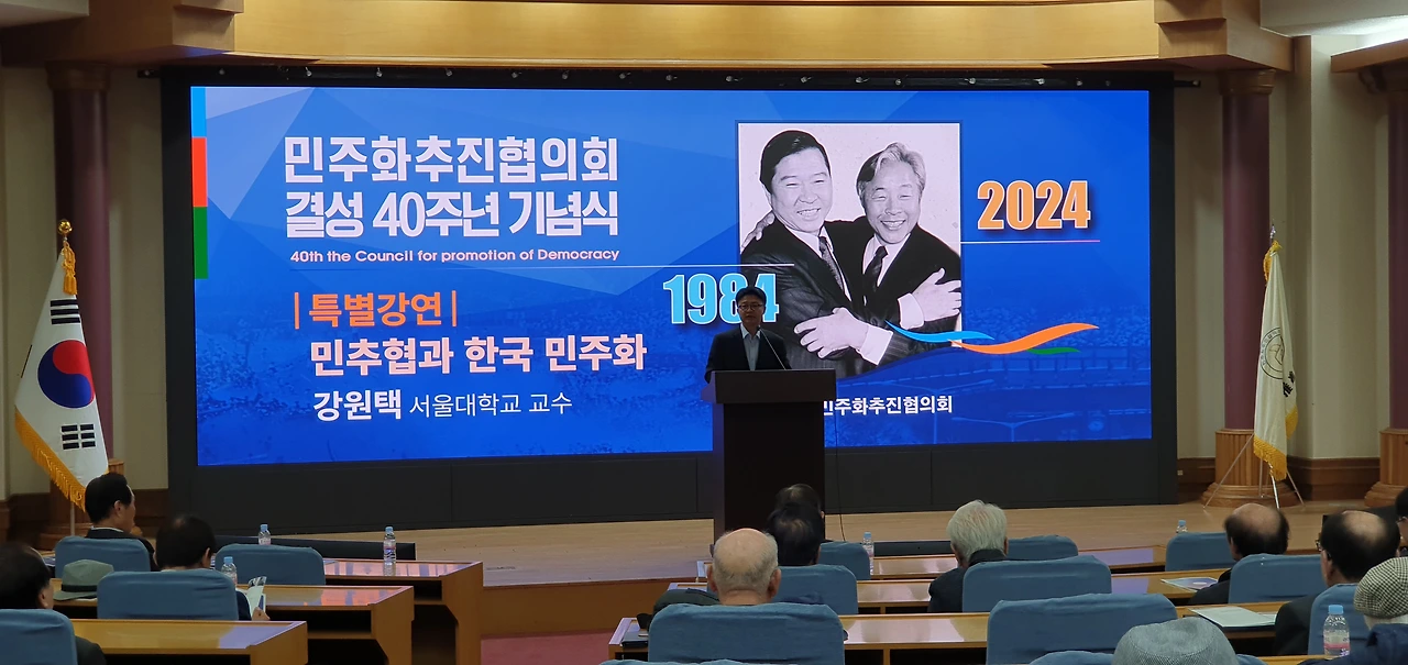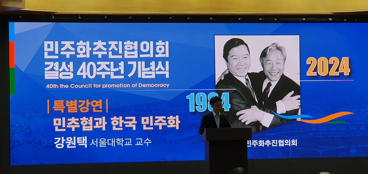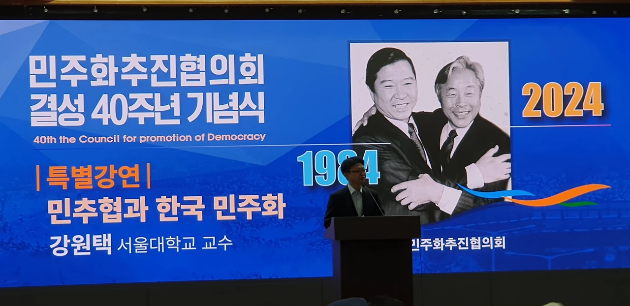 또 한편으로는 지혜롭게 의회 내에서 투쟁을 했습니다. 신민당(신한민주당)을 만들고 2‧12 총선에서 압승함으로써 6‧10 민주항쟁과 6‧29 선언을 통해 직선제 개헌을 쟁취했습니다. 김영삼 정권, 김대중 정권이 나올 수 있었고 그 과정에서 민추협이 핵심적 역할을 했다는 사실입니다.
