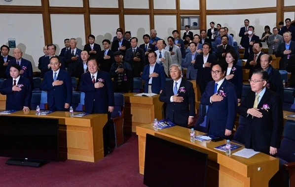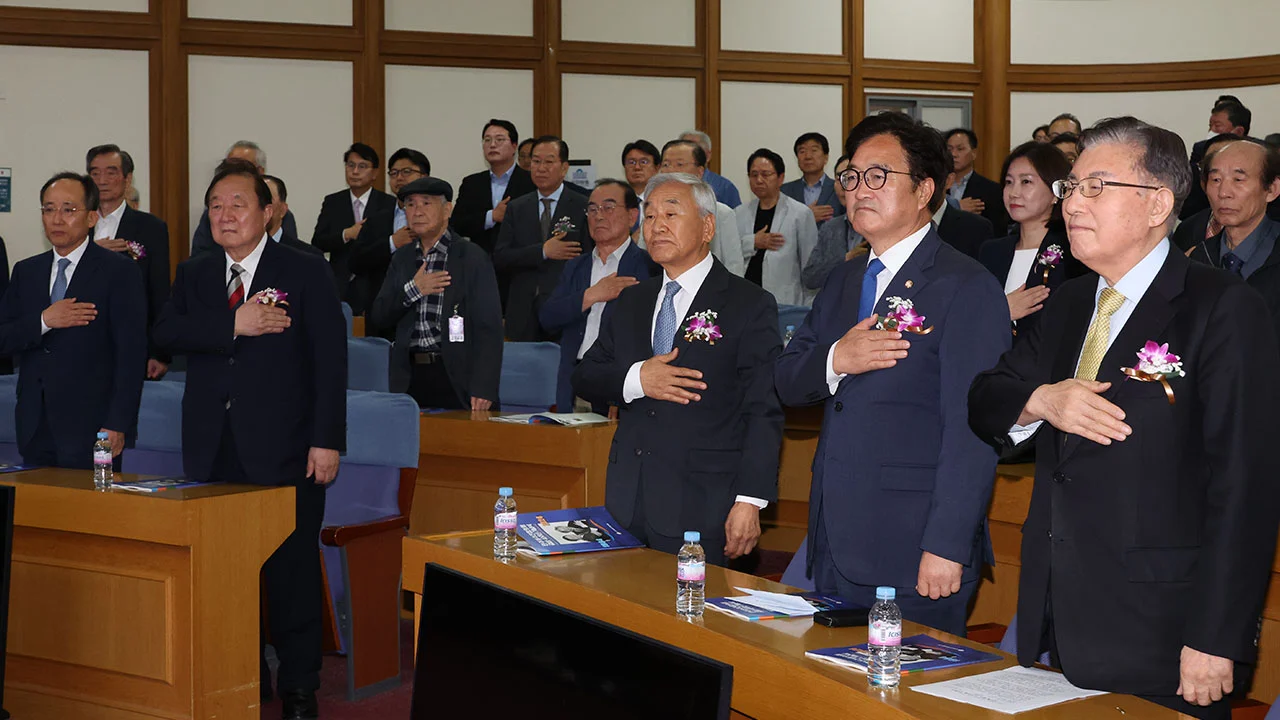 으레 큰 행사 때 들려오는 국기에 대한 경례지만, 22일 여의도 국회의원회관에서 개최된 민주화추진협의회(민추협) 결성 40주년 기념식에서 울려 퍼지는 울림은 또 다르게 와닿았다는 평가다.